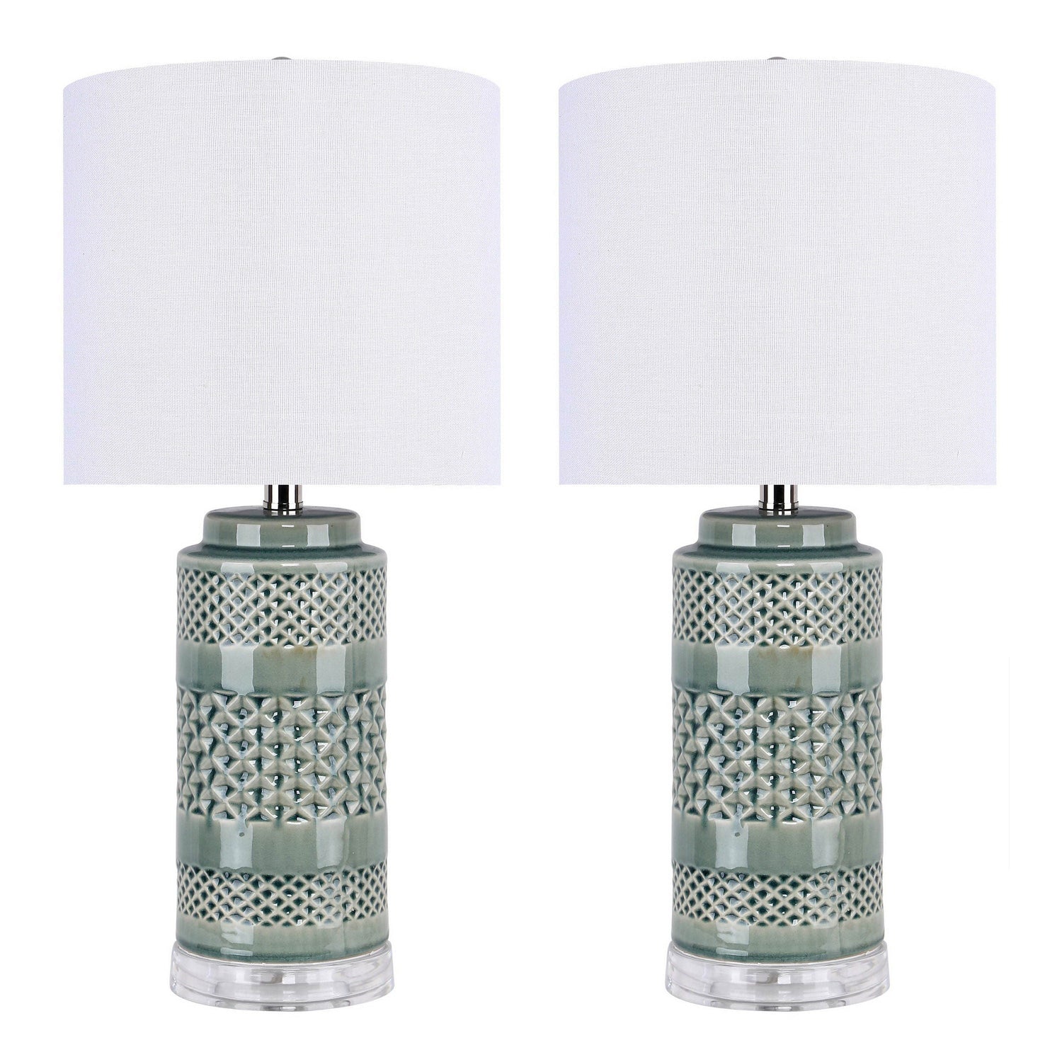 Casa - Contemporary Table Lamp (Set of 2) - Sage Green Crackle / Polished Nickel / White