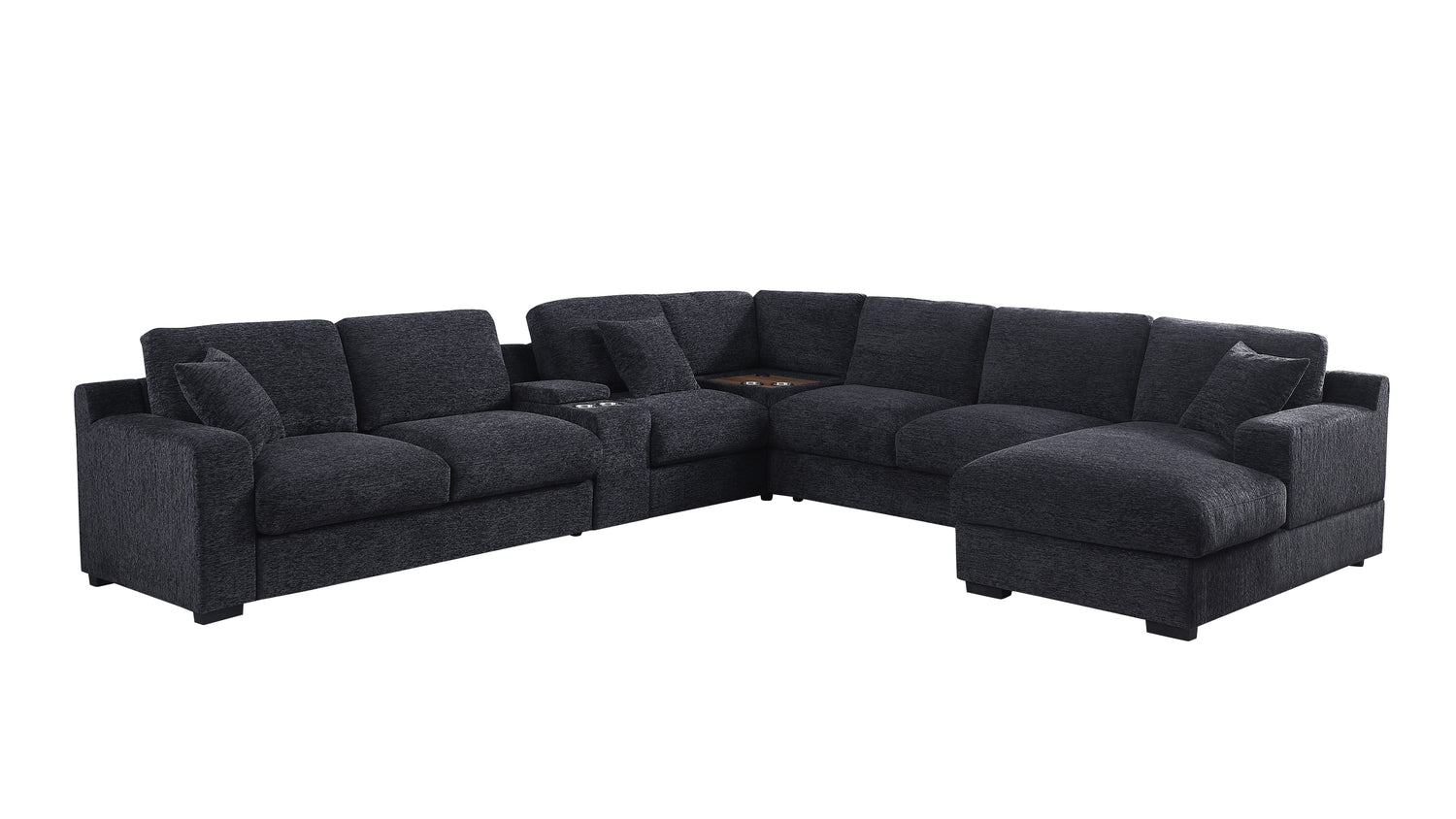 Celine - Chenille Fabric Corner Sectional Sofa With Right-Facing Chaise, Cupholders, And Charging Ports by Couch.com - Dark Gray is backordered and will ship as soon as it is back in stock.
