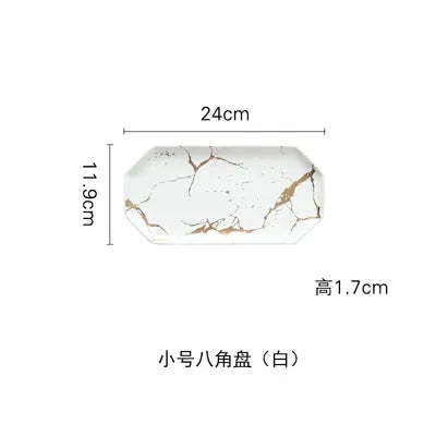 Bring a touch of elegance and modernity to your dining experience with our European Ceramic Dishes. This exquisite set features four unique styles, each showcasing a brilliant black and white pattern accented with luxurious golden details. These dishes are not only a feast for the eyes but also designed to blend seamlessly into contemporary table settings for any occasion.