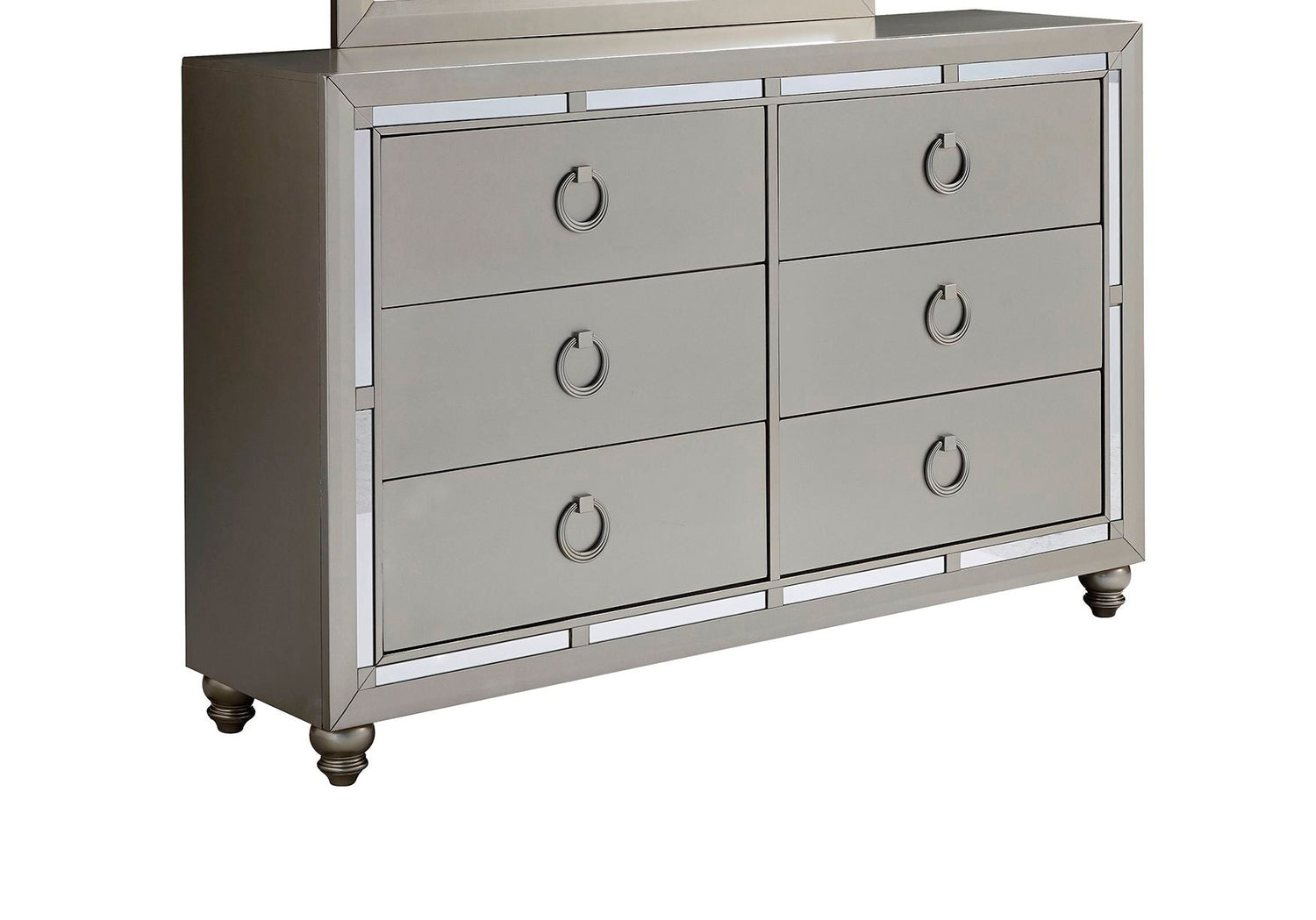 - Elegant Design: The CHLOE GEMSTONE SILVER DRESSER features mirror accents and a classic bun foot design, offering a sophisticated and stylish look for any bedroom.