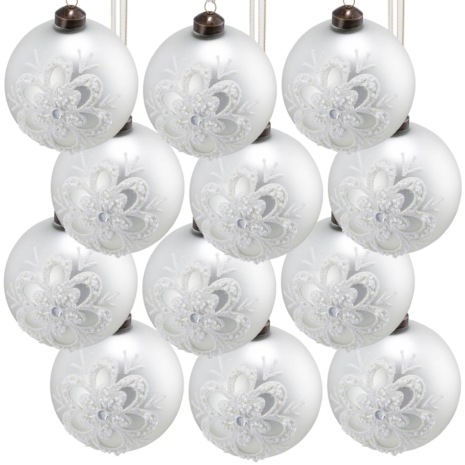 Christmas Ball Ornaments, Glass Decorative Hanging Ball Christmas Tree Ornaments, For Holiday Party Decorations (Set of 12) - White