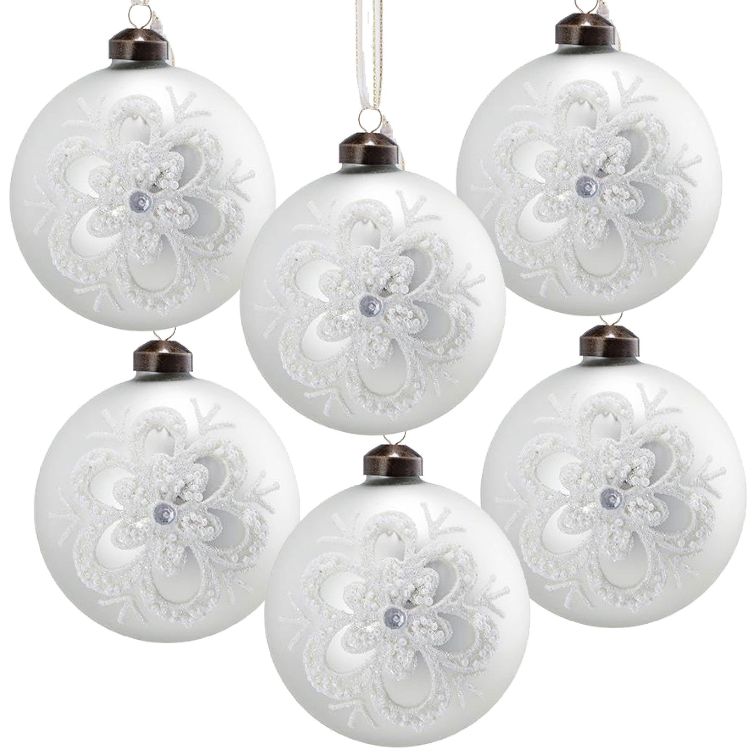 Christmas Ball Ornaments, Decorative Hanging Ball Christmas Tree Ornaments For Holiday Decorations (Set of 6) - White