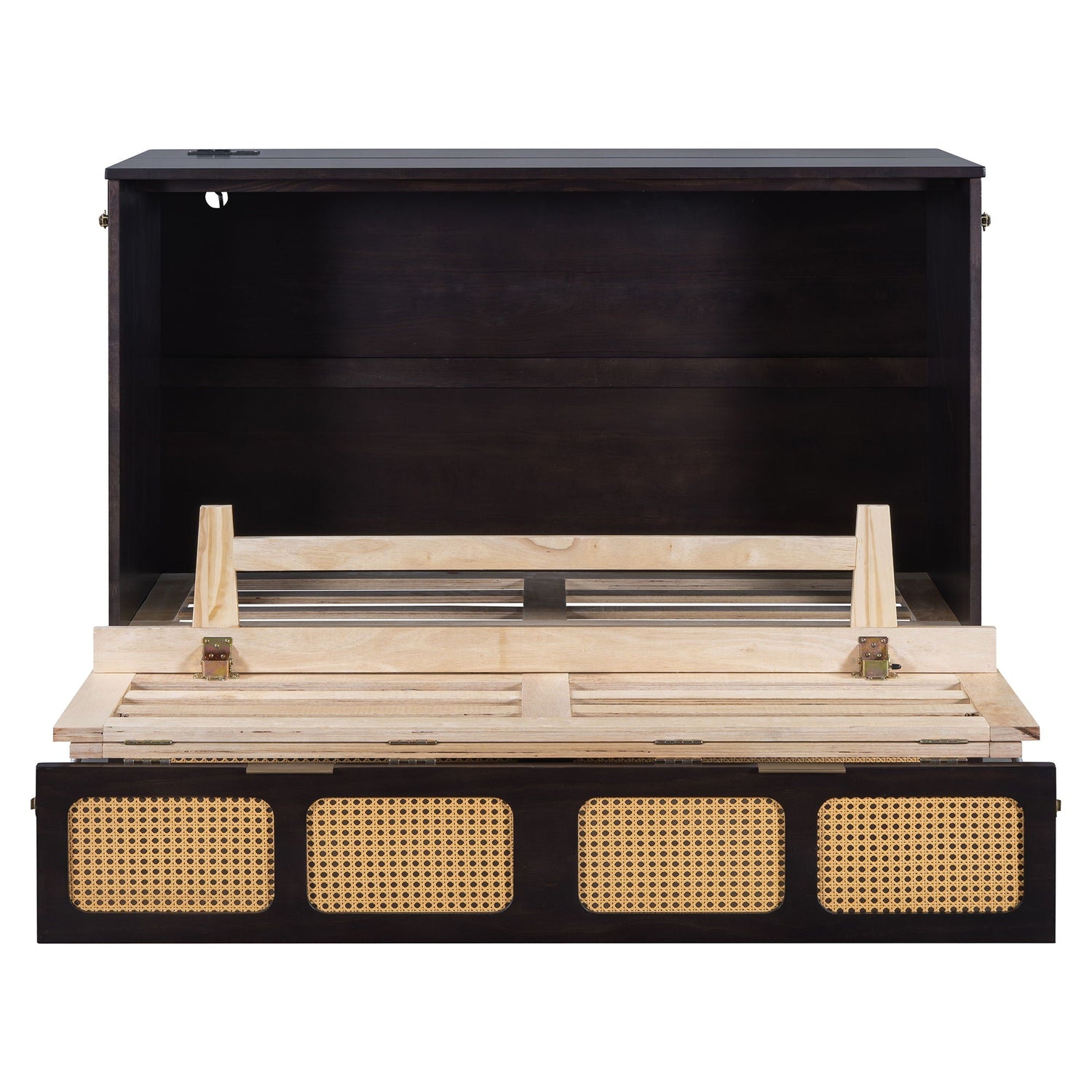 Full Size Murphy Bed With Large Drawers And Elegant Design - Espresso