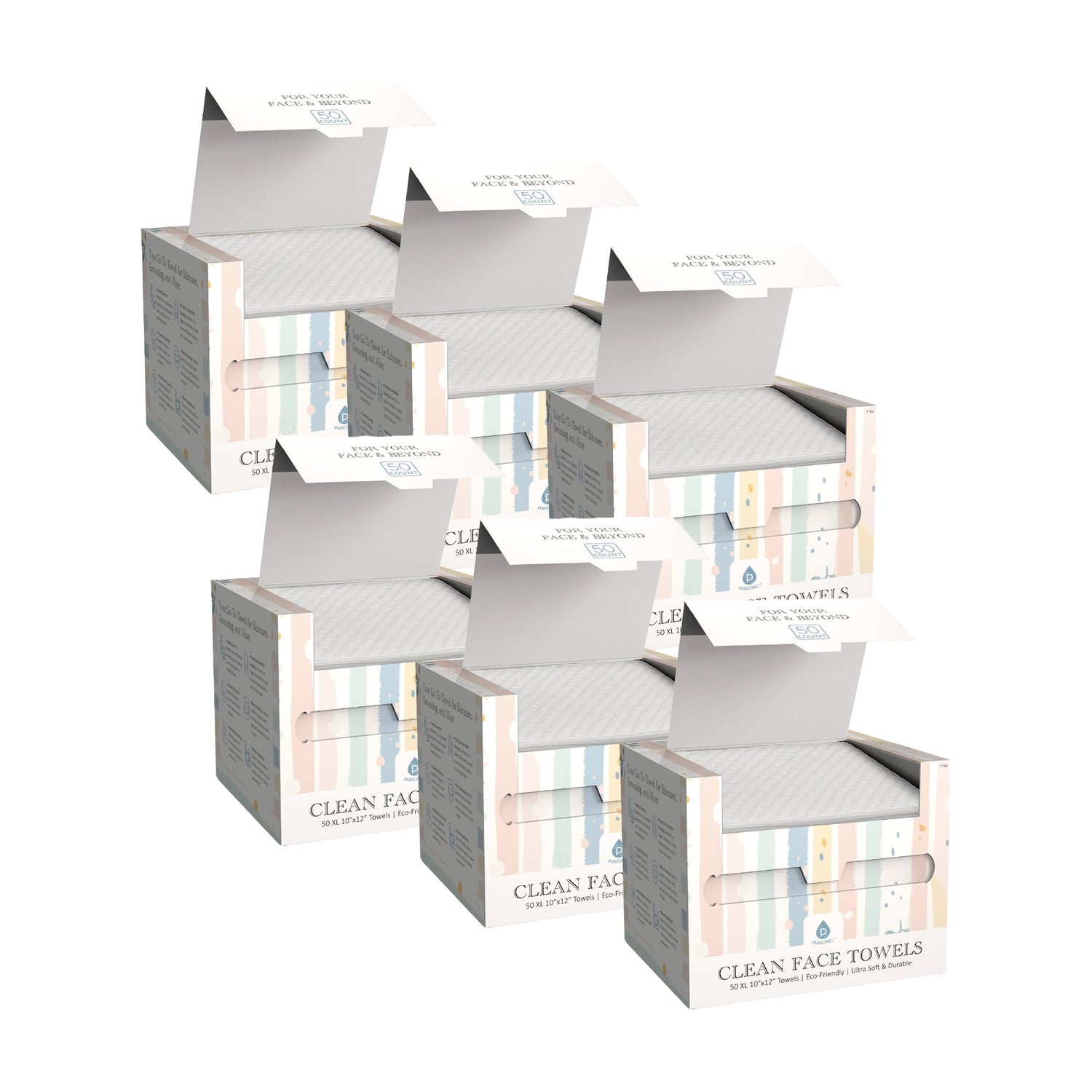 Clean Facial Towels – Six Pack Bundle | Eco-Friendly, Extra-Large, 100% Plant-Based Towels by Pursonic