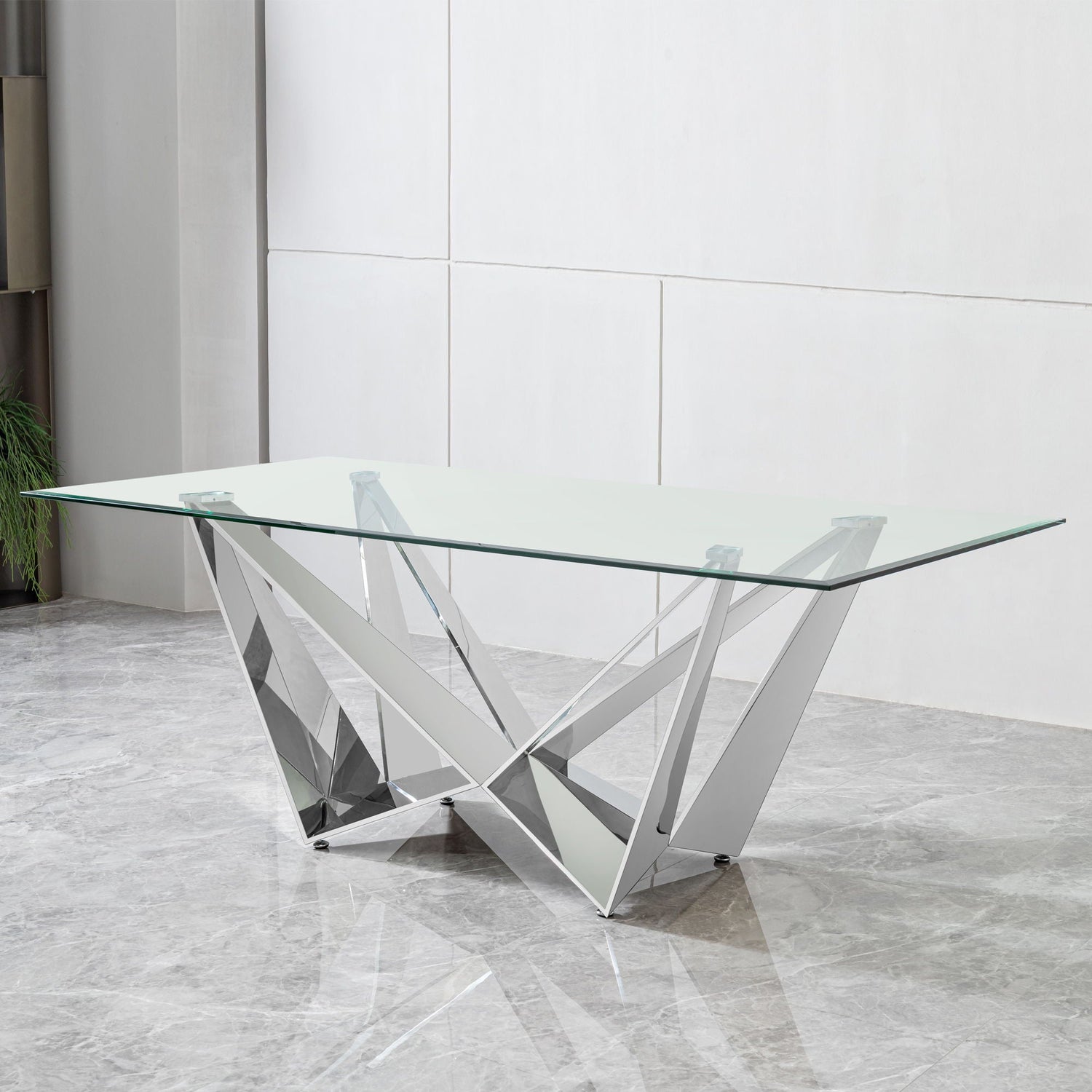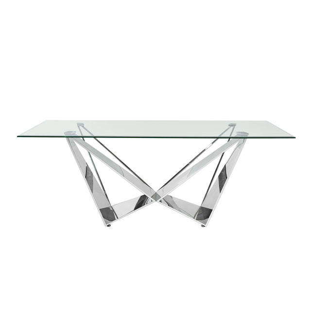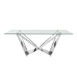 Clear Glass With Polished Stainless Steel Base Dining Table - Silver