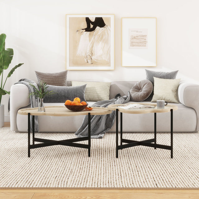 Cloud Coffee Table (Set of 2), Coffee Table, End Table With Tempered Changrainbow Glass For Living Room, Bedroom, Office, Balcony - Natural Wood by Couch.com