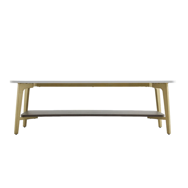 Coffee Table Rectangular Center Table For Living Room Open Space Side Table With Metal Frame - Golden / White by Couch.com