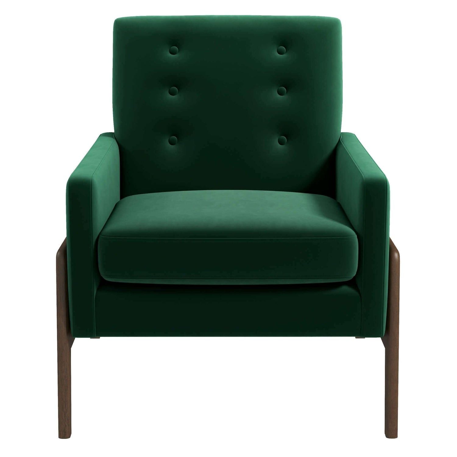 Cole - Solid Wood Lounge Chair - Green Fabric