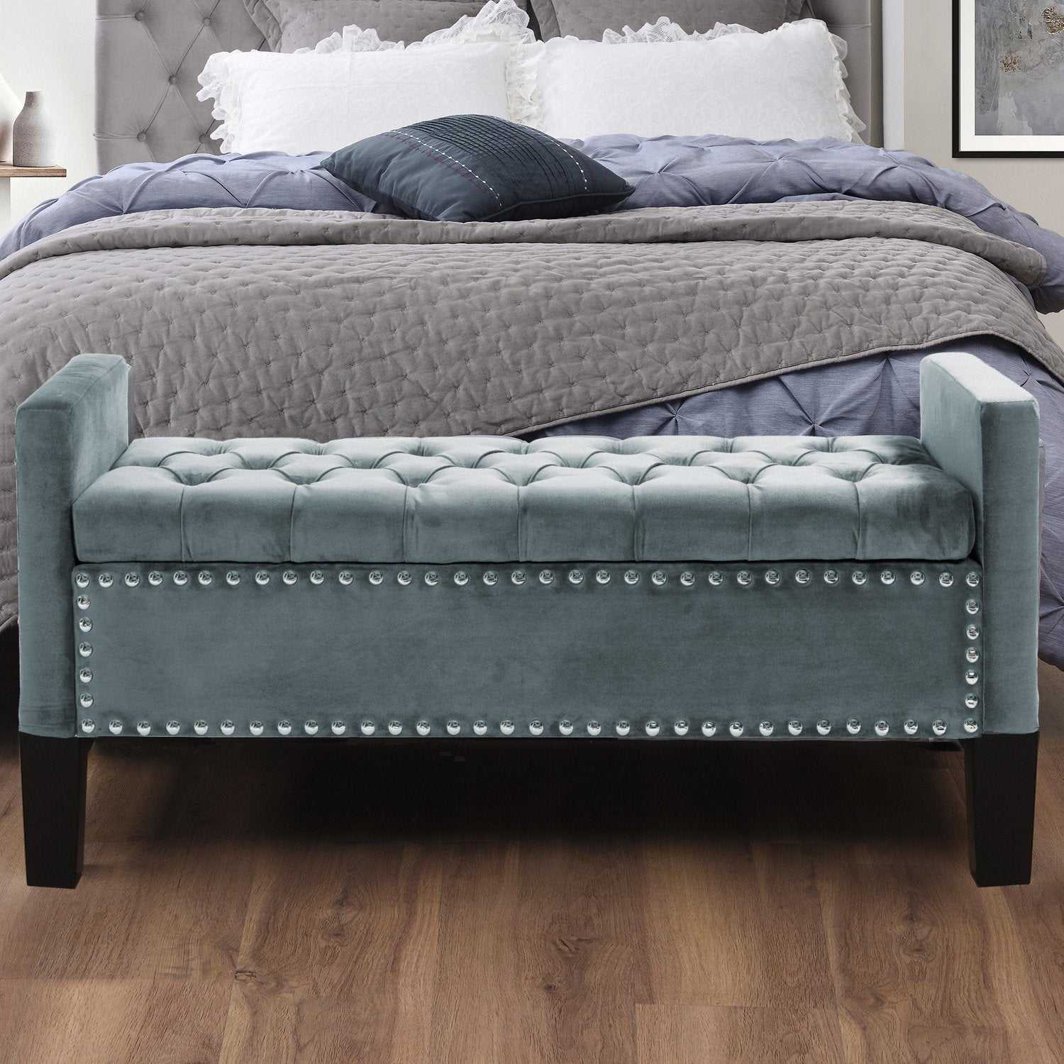 Columbus Velvet Storage Bench - Light Blue is backordered and will ship as soon as it is back in stock.