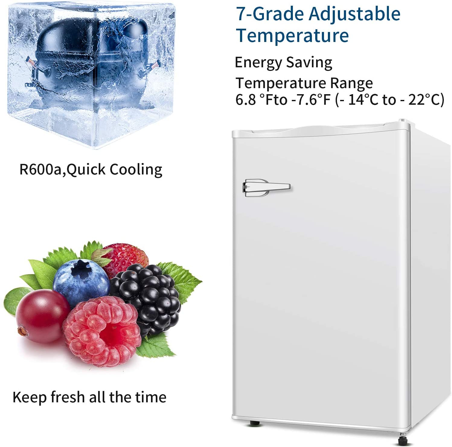 - Energy-saving & Quiet - By using an energy-efficient compressor, it can quickly cool food while making low noises.