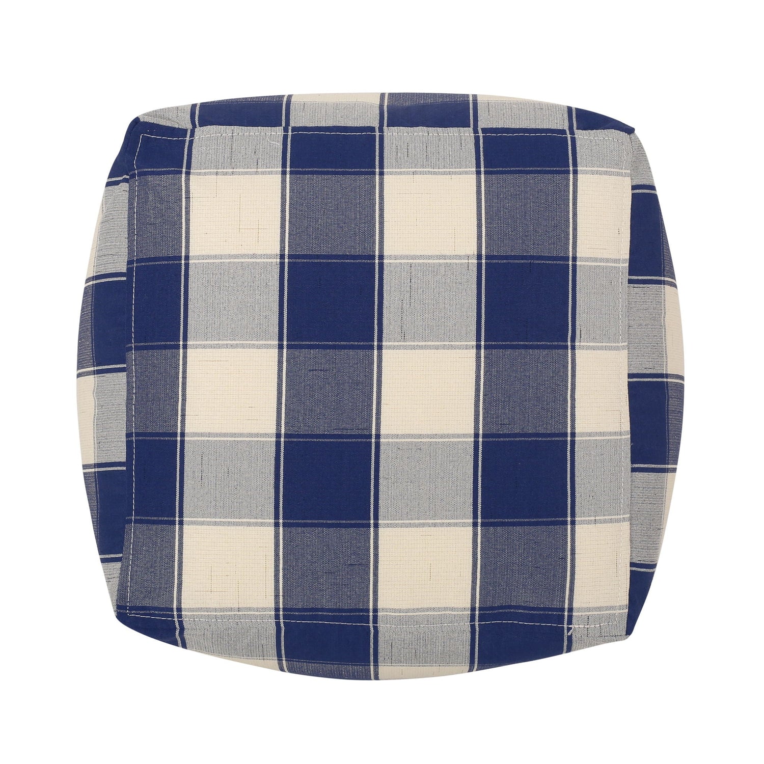 Connor - Checkered Square Pouf Ottoman And Floor Cushion - Ivory / Navy