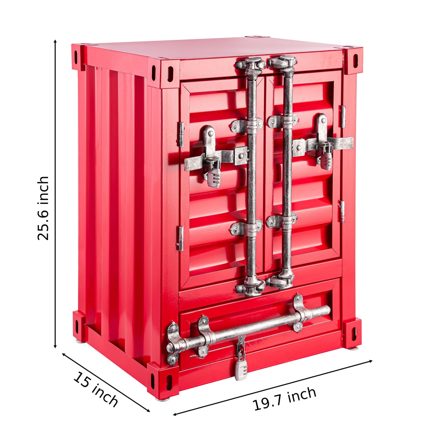 This industrial-style Container End Table, designed to resemble a shipping container with its robust construction and sleek appearance. This versatile piece can be used as a bedside table, a side table, or a tool storage container in your garage. It features ample storage space, providing a practical and functional solution for organizing your belongings. The sturdy design ensures that it will stand up to everyday use and last for years to come. Whether you're looking to add an industrial edge to your home decor or need a practical storage solution, our industrial-style small table is the perfect choice.