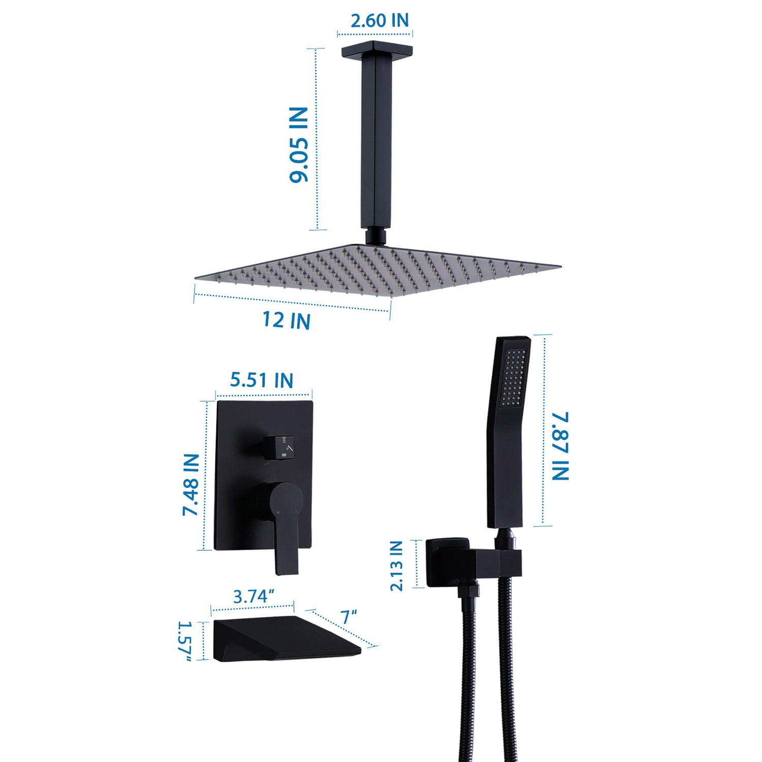 Contemporary Shower System With 12" Rainfall Head And Handheld Spray, Wall Mounted - Matte Black