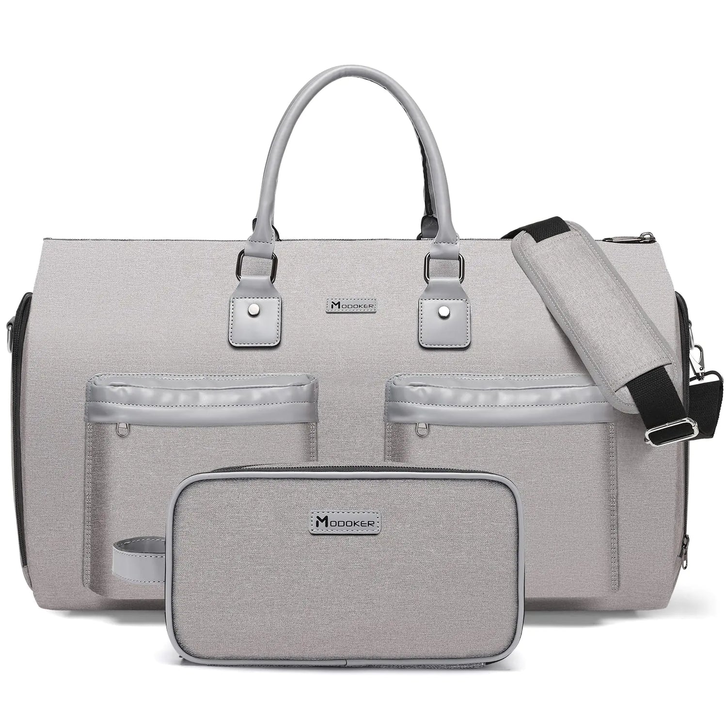 Convertible Garment Bag with Toiletry Bag, Modoker Carry on Garment Duffel Bag for Men Women - 2 in 1 Hanging Suitcase Suit Travel Bags, Light Grey
