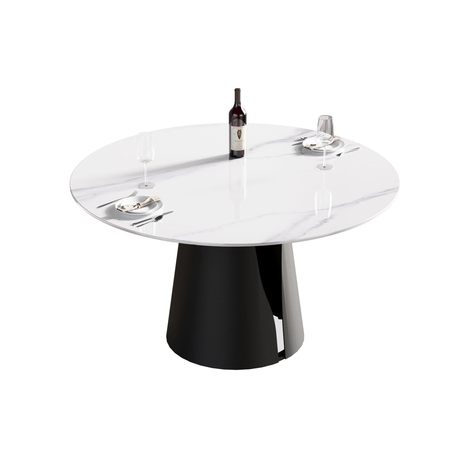 Couch.com 53.15" Modern Artificial Stone Round Carbon Steel Base Dining Table, Can Accommodate 6 People White / Black, Durable Design, Easy to Clean, Marble/Stone Construction, White Finish