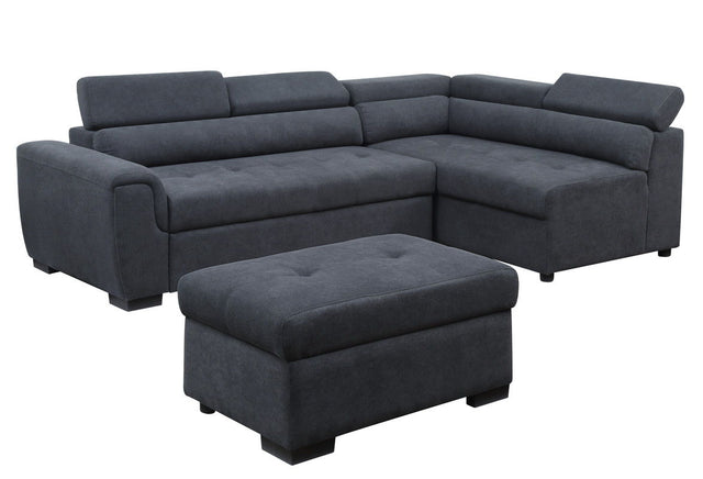 Couch.com Haris Fabric Sleeper Sofa Sectional With Adjustable Headrest And Storage Ottoman Dark Gray, Adjustable, with Storage, Modern Style, Fabric Construction, Dark Gray Finish
