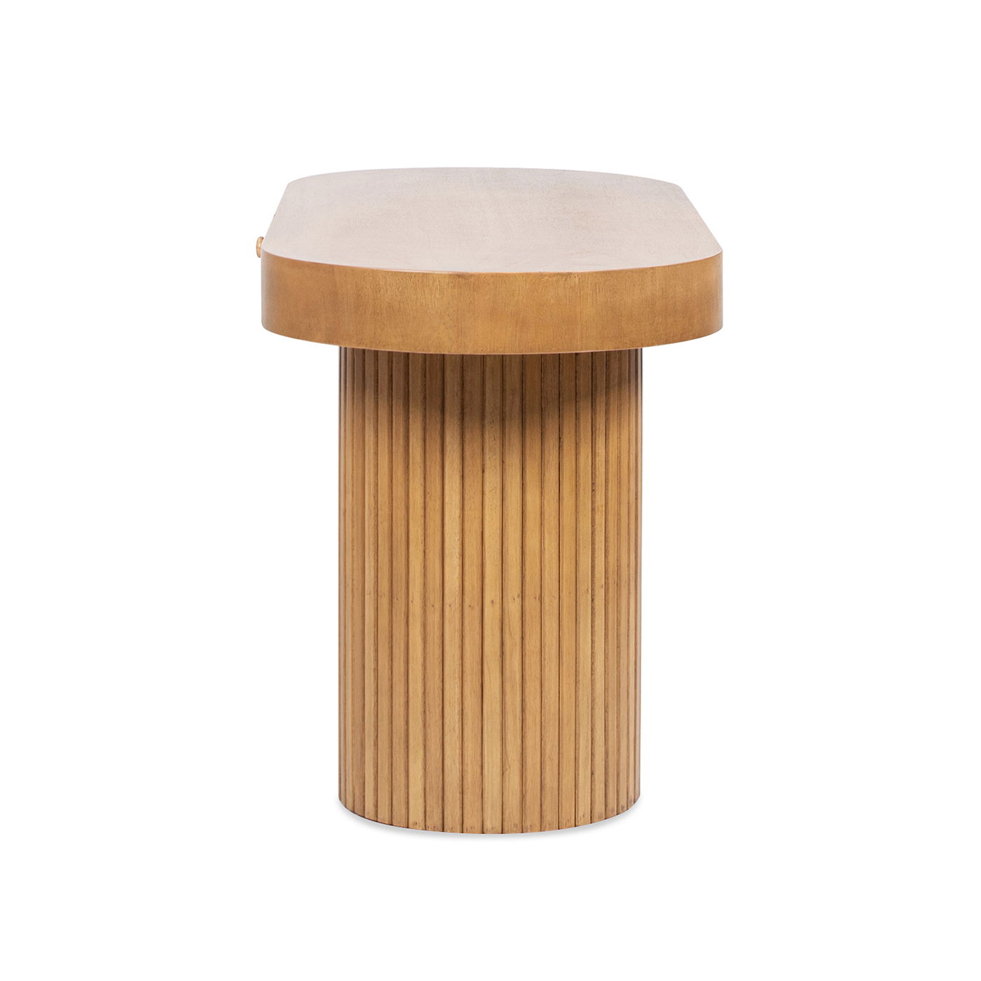 Couch.com Jesse Single Drawer Fluted Oval Console Desk Honey Brown, Durable Design, Wood Construction, Light Brown Finish