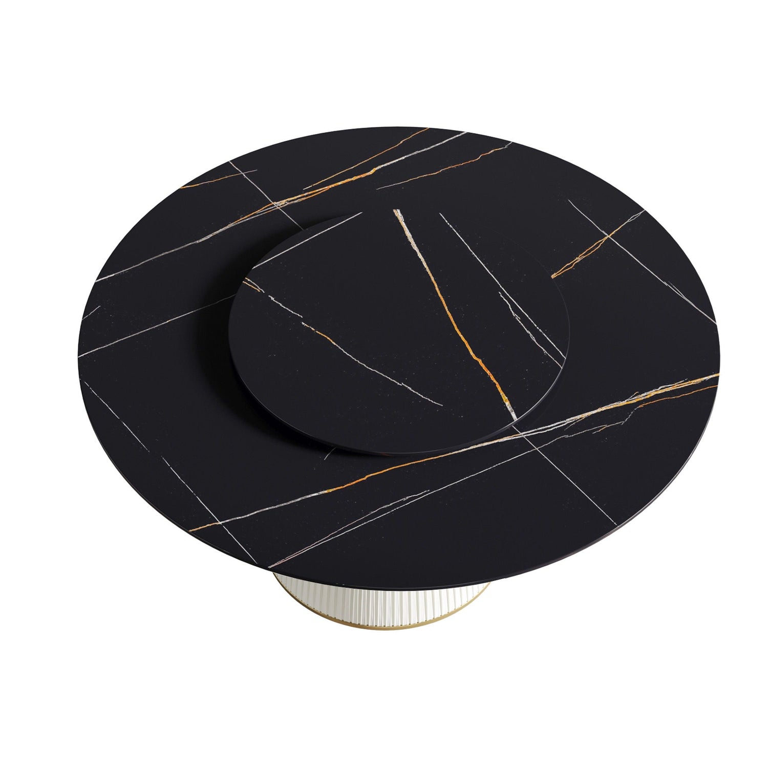 Couch.com Modern Artificial Stone Round Plywood Base Dining Table, Can Accommodate 8 People Artificial Stone Turntable (Not Including Chairs) Black / Beige, Durable Design, Easy to Clean
