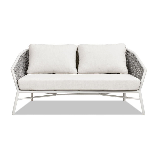 Couch.com Rowan Rope Barrel Back Patio Conversation Loveseat Sofa Optic White, Durable Design, Fabric Construction, White Finish