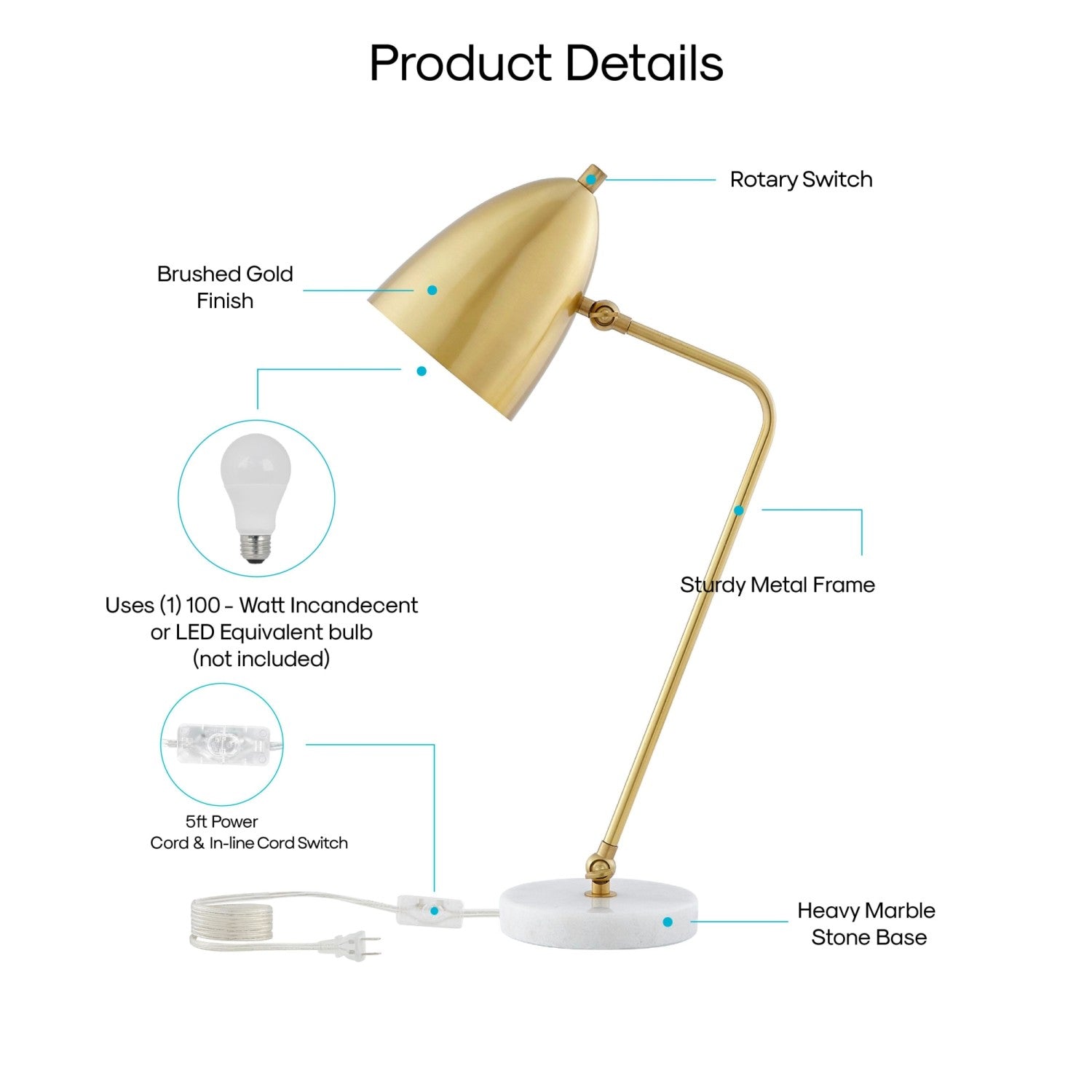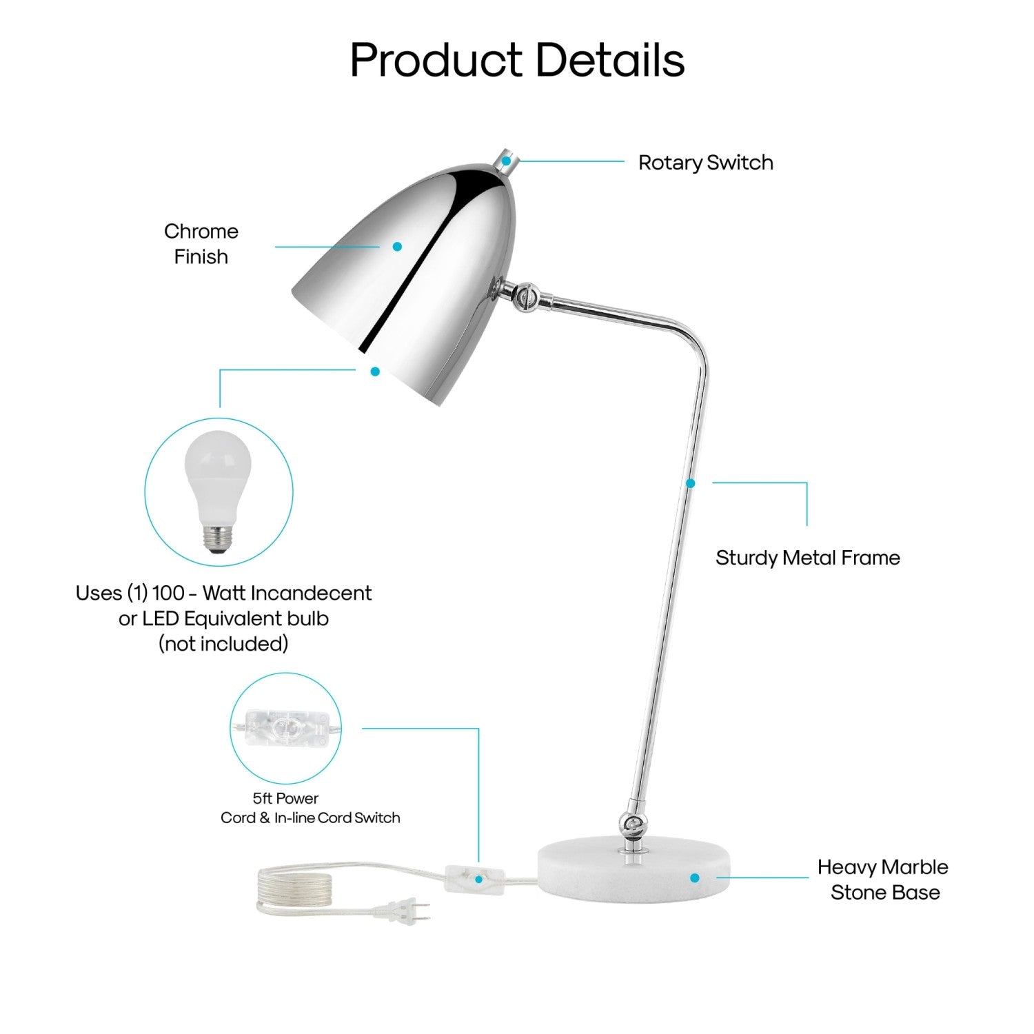 - STUNNING DESIGN - Minimalist but stunning design creates a fusion of modernity and convenience. 100-watt bulb illumination supported by an adjustable sturdy metal frame and sculpted marble base for that elegant look and function.