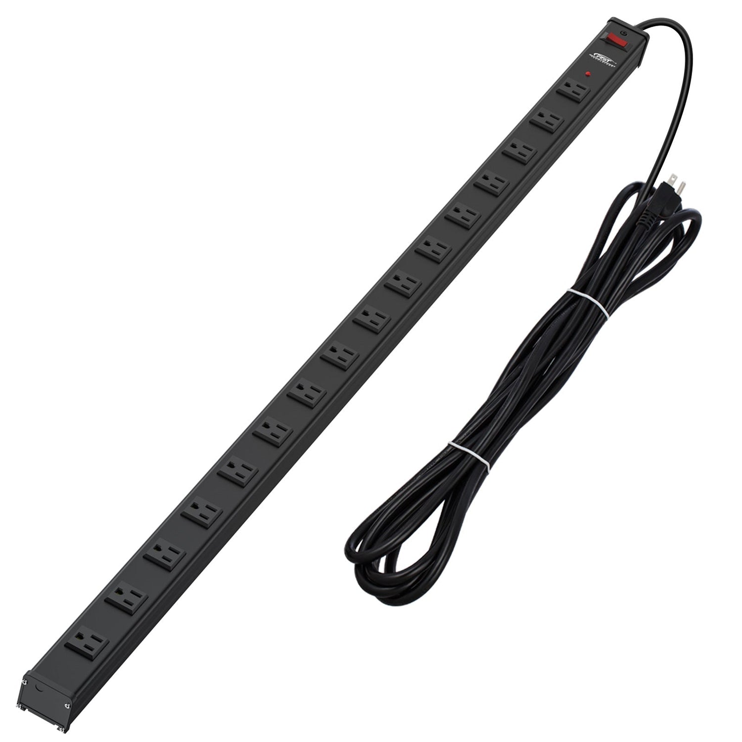 CRST 2.6" Wide Space 16 Outlets Mountable Metal Long Power Strip Surge Protector, Optional 15FT/6FT Power Cord, Mounting Brackets Included - 15FT Power Cord is backordered and will ship as soon as it is back in stock.