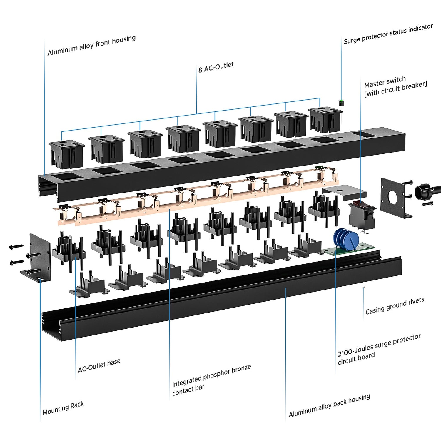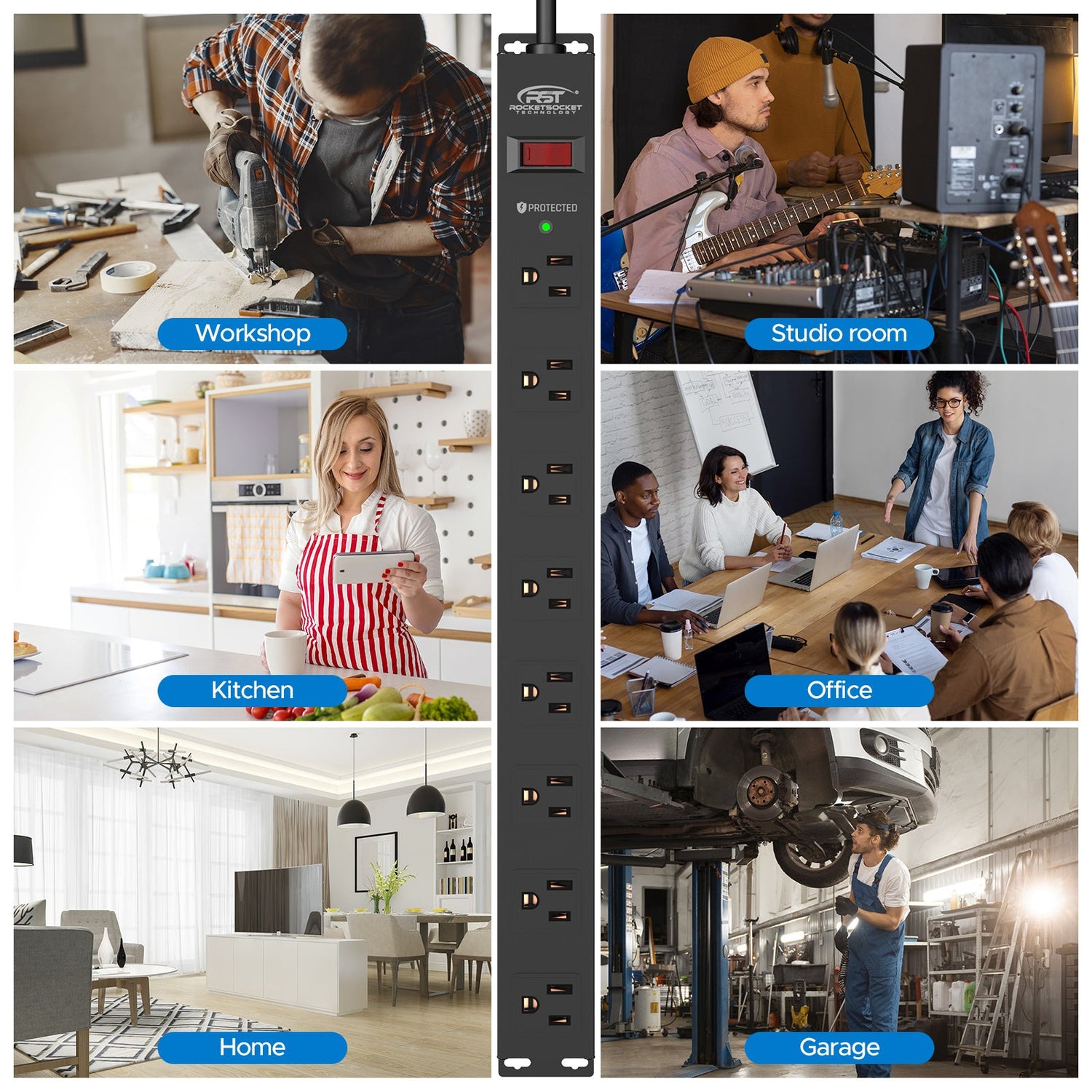 CRST 8 Outlets Wide Spaced Mountable Metal Power Strip Surge Protector, 6FT Flat Plug Power Cord, 2100 Joules Protection, Mount Kits Included - Black is backordered and will ship as soon as it is back in stock.