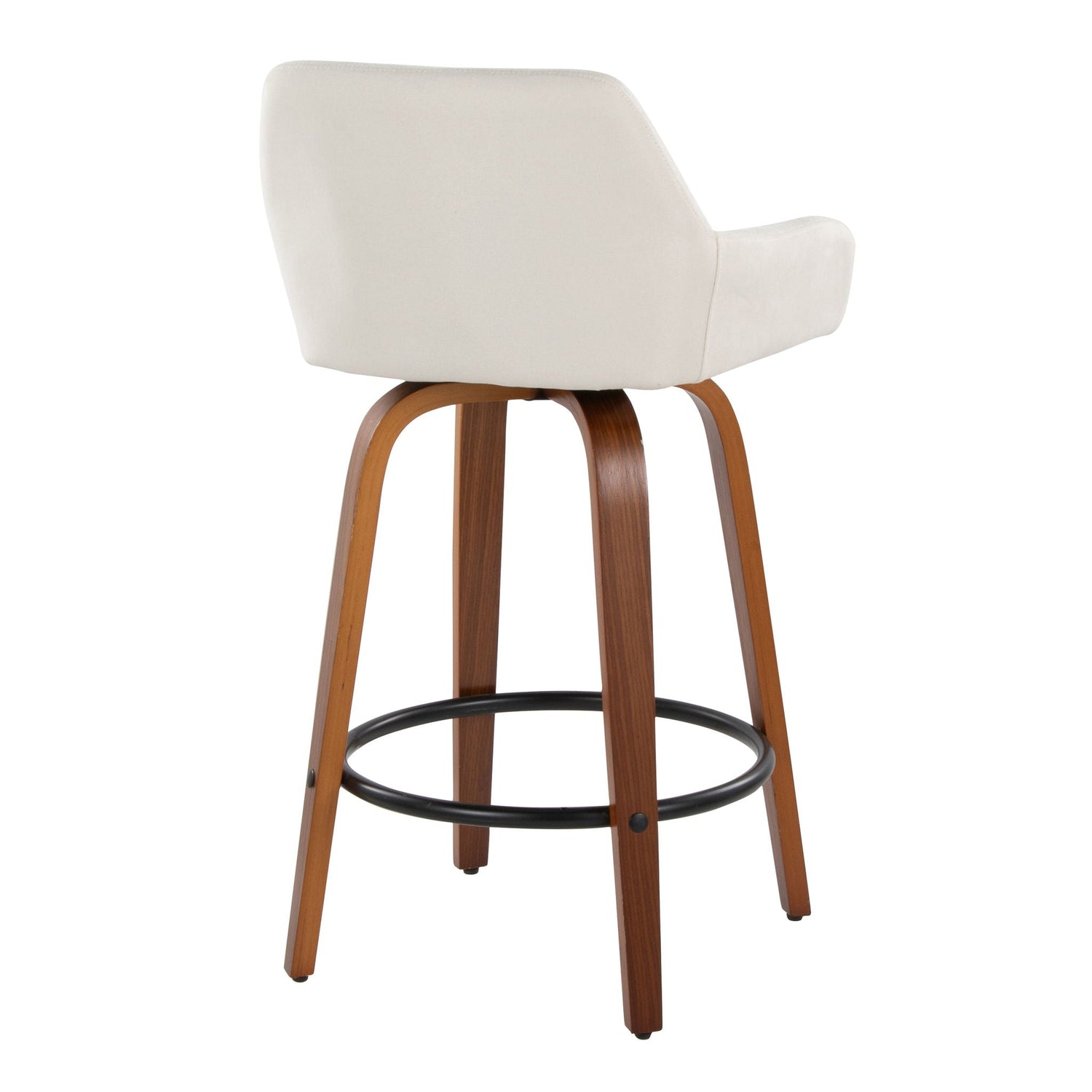 Daniella - Contemporary Fixed Height Counter Stool With Swivel With Round Footrest (Set of 2) - Walnut / Cream