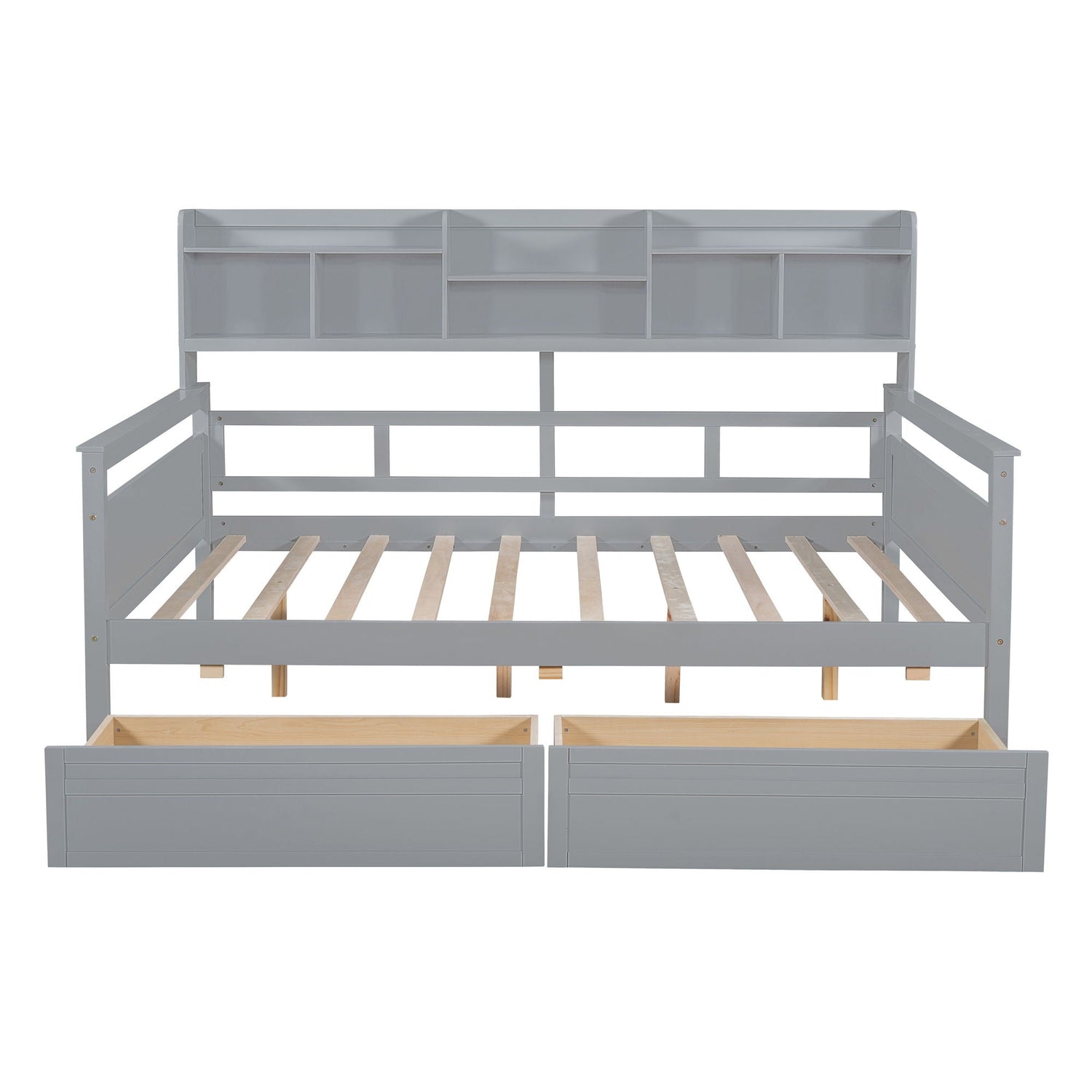 Full Size Daybed, Slat Support, With Bedside Shelf And 2 Drawers - Gray