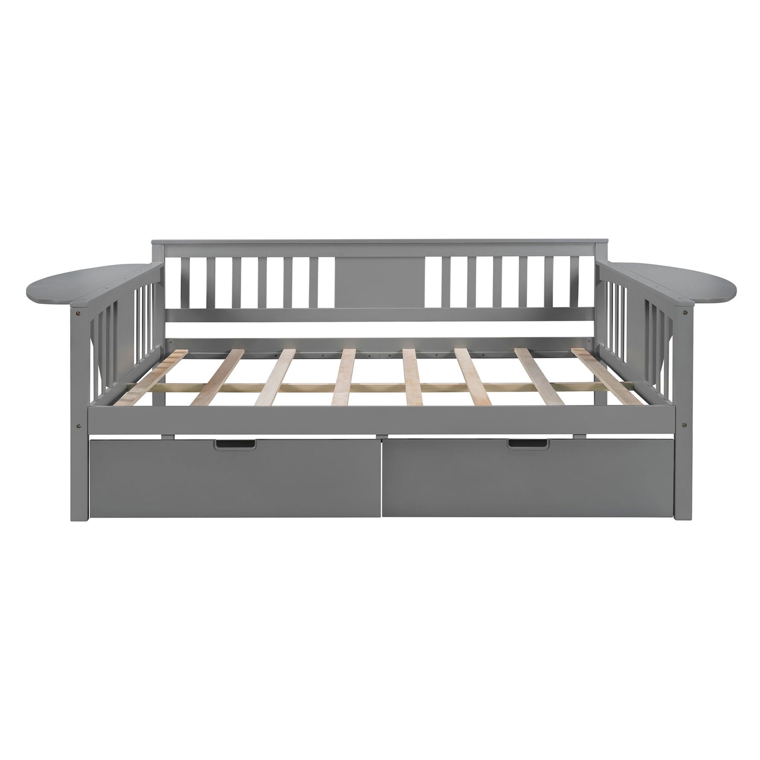 Full Size Daybed With 2 Drawers, Slat Support - Gray