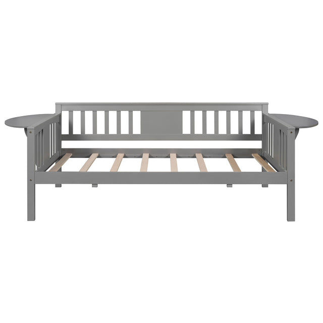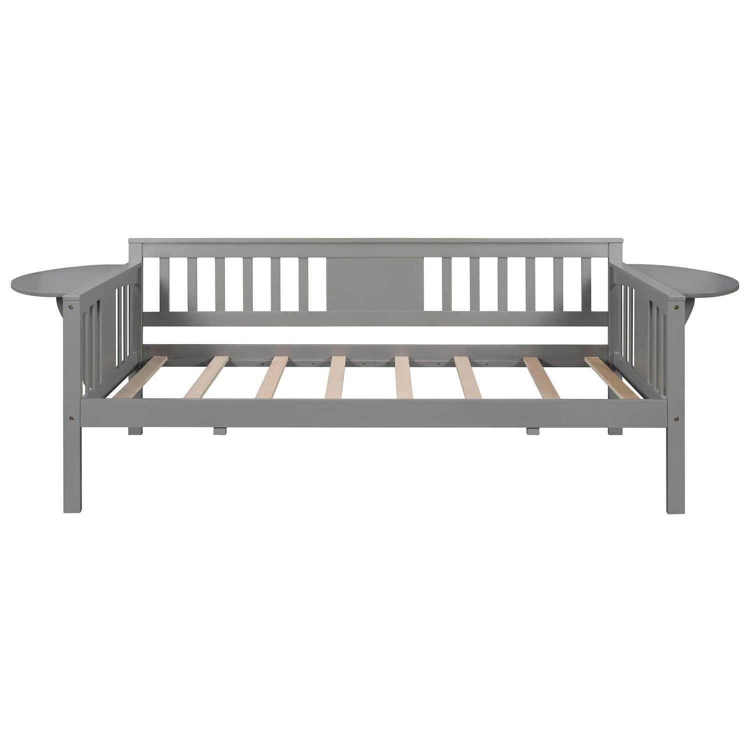 Multi-functional Design: The daybed frame with rails on three sides can serve as a bed in your bedroom, or as a sofa or seat in your living room. With small, foldable tables on the left and right, you can conveniently place a cup of coffee or a book within reach. It perfectly meets your different needs.