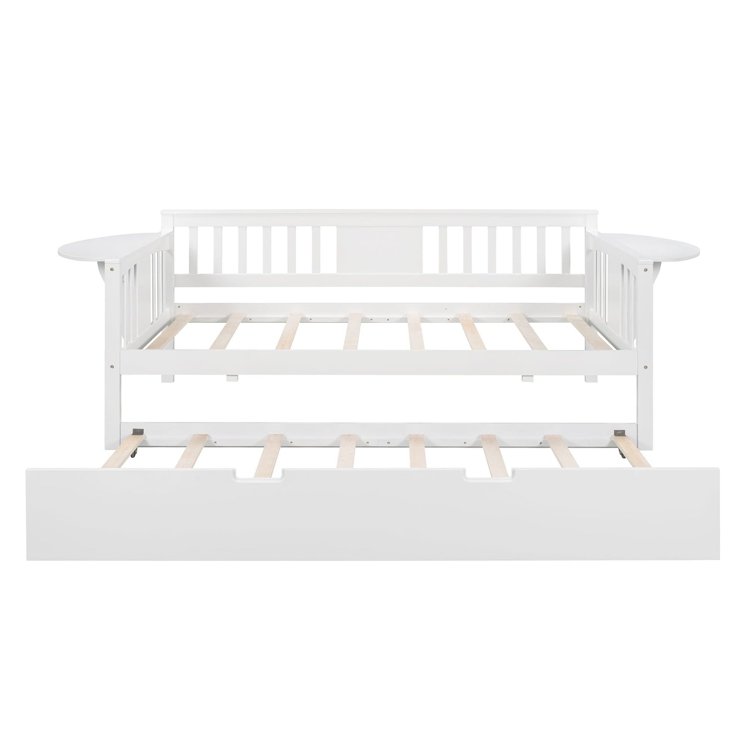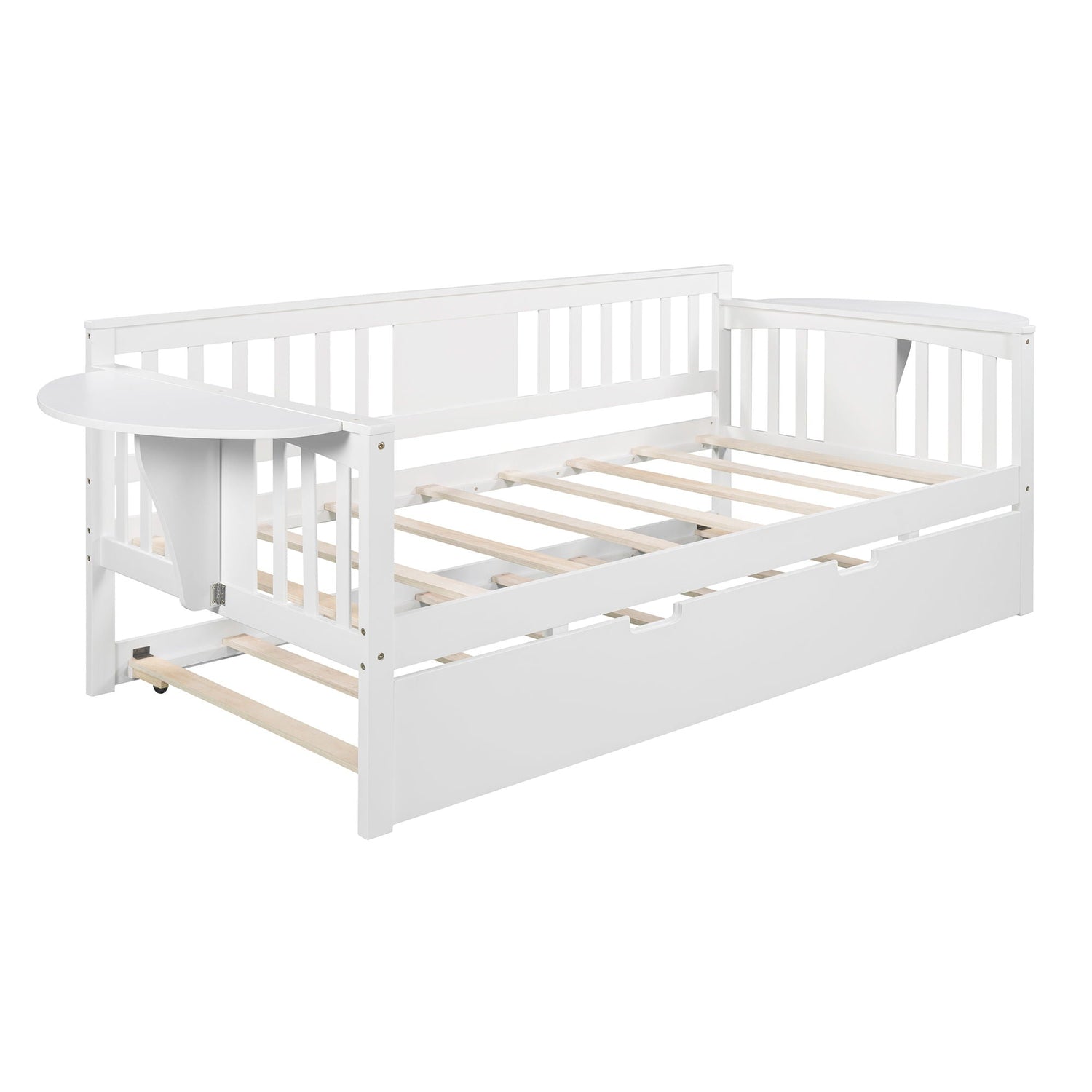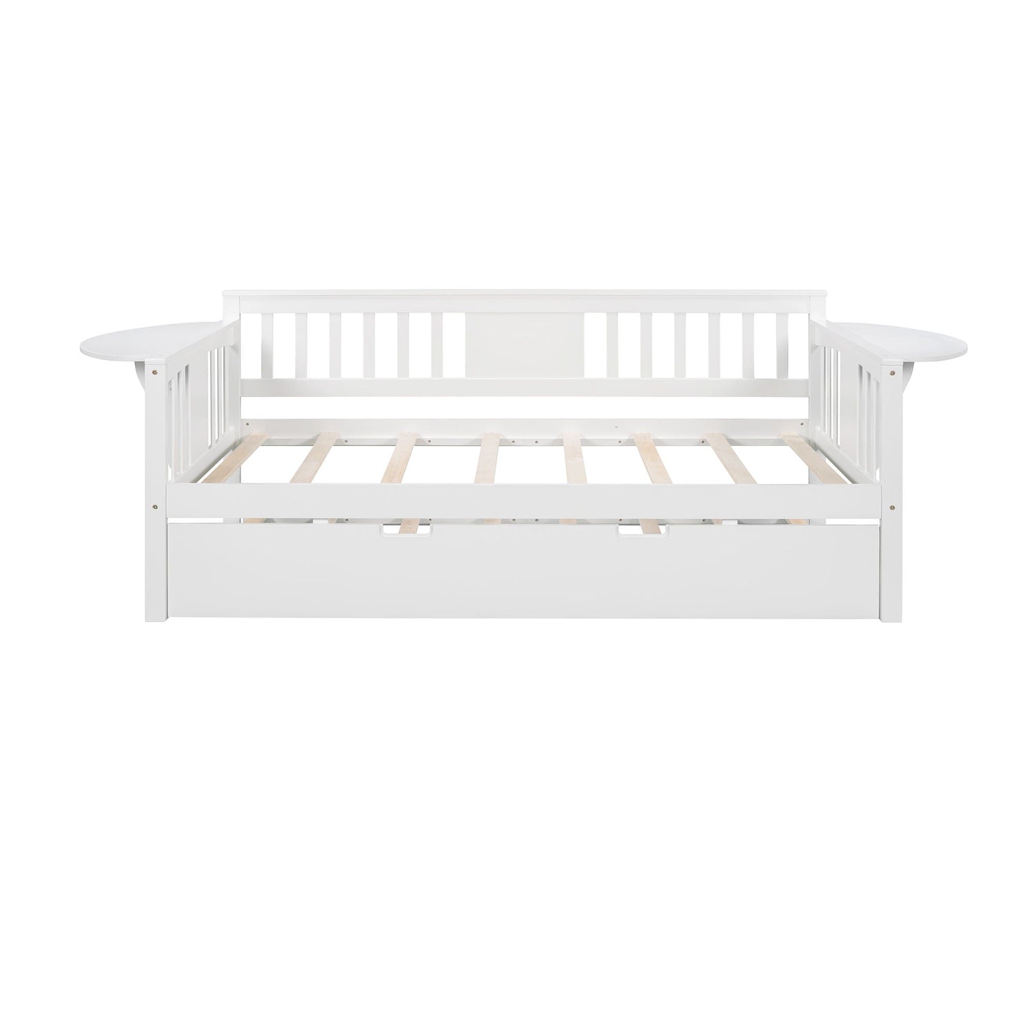 Twin Daybed With Trundle Bed, Sofa Bed For Bedroom - White