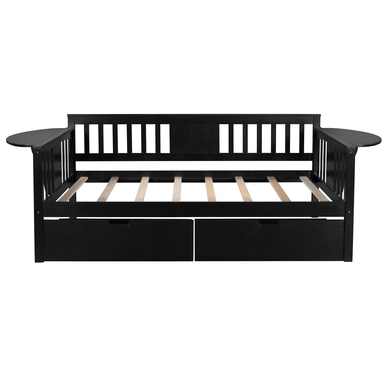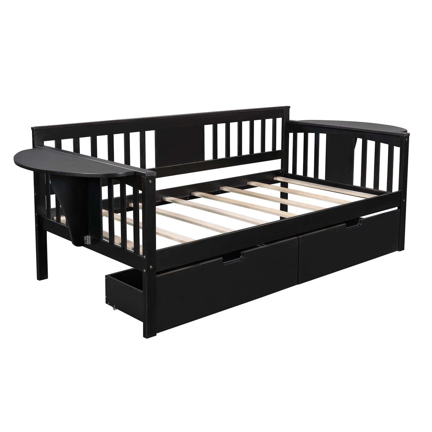 Twin Size Daybed With 2 Drawers, Slat Support - Espresso