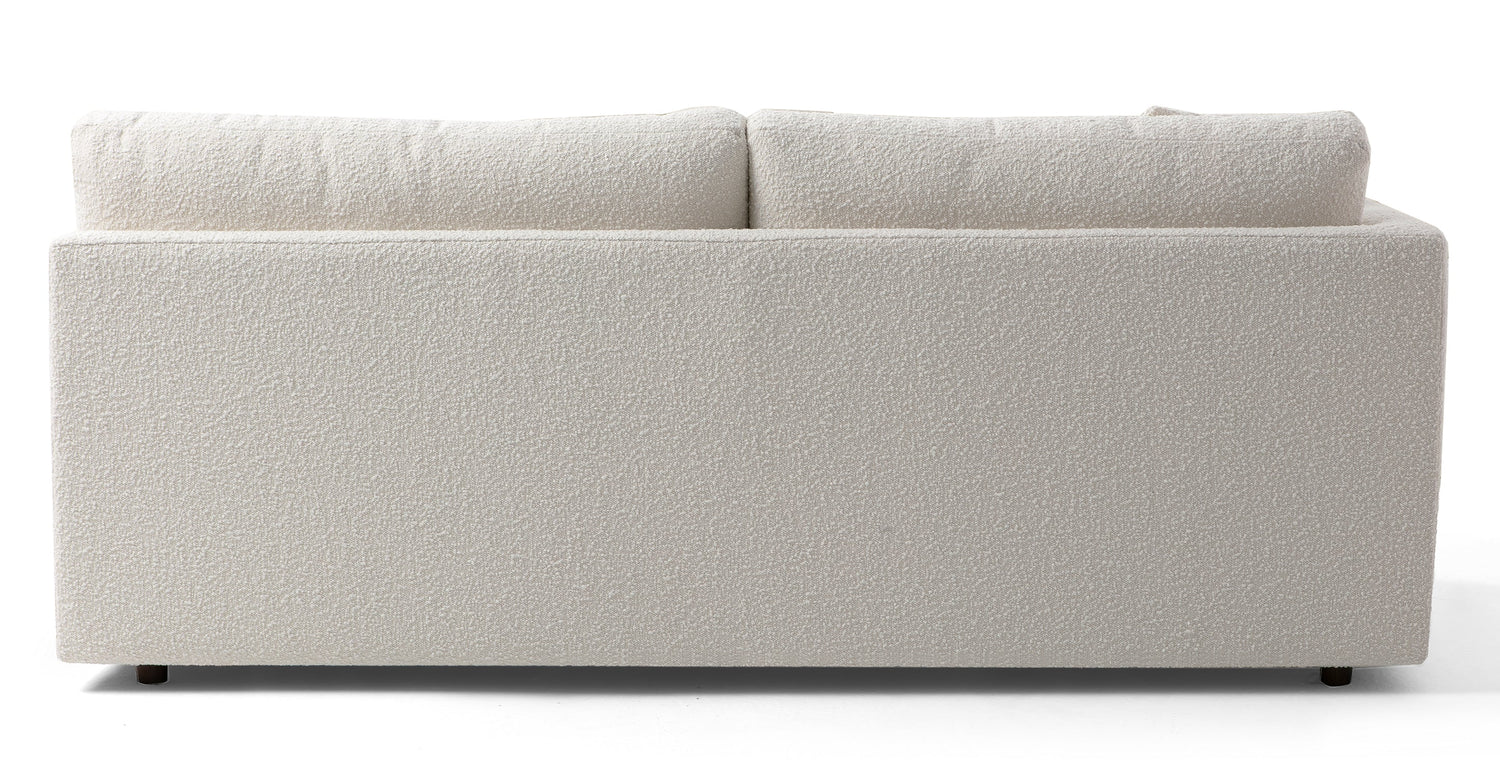 Elevate your living space with the Domus 77” Contemporary Left Arm Fabric Sofa in luxurious Blanc Boucle. This modular masterpiece combines contemporary design with unmatched comfort, offering a versatile seating solution that can adapt to your unique space. Crafted from solid kiln-dried Ash hardwood, the frame boasts FSC certification for sustainability. The indigenous boucle fabric, composed of 95% polyester and 5% acrylic, is family and pet-friendly, stain-resistant, and highly durable with a 100,000 Martindale rub count.