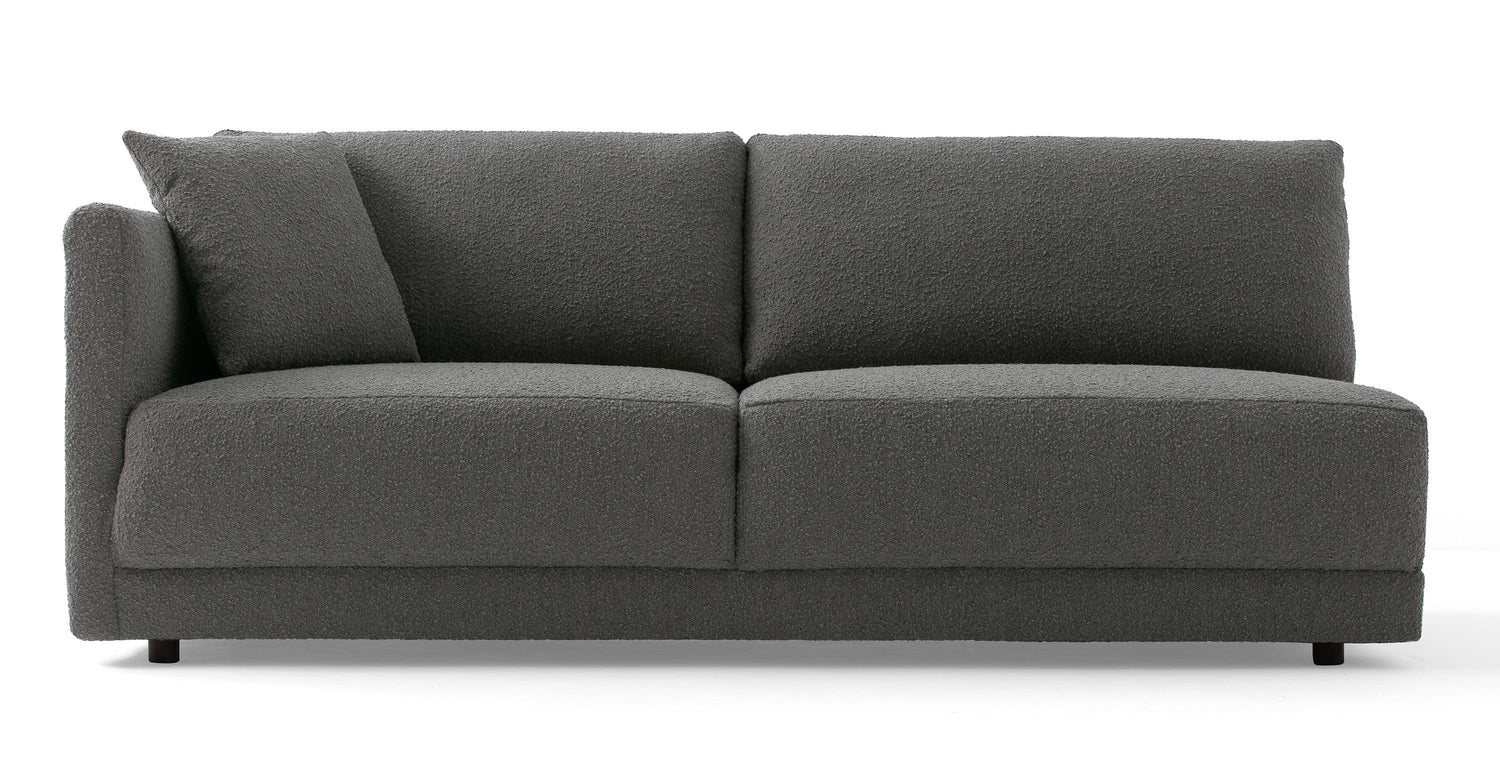 Domus 74" Left Arm Leather Sofa, Ebony by Couch.com - Gris Boucle is backordered and will ship as soon as it is back in stock.