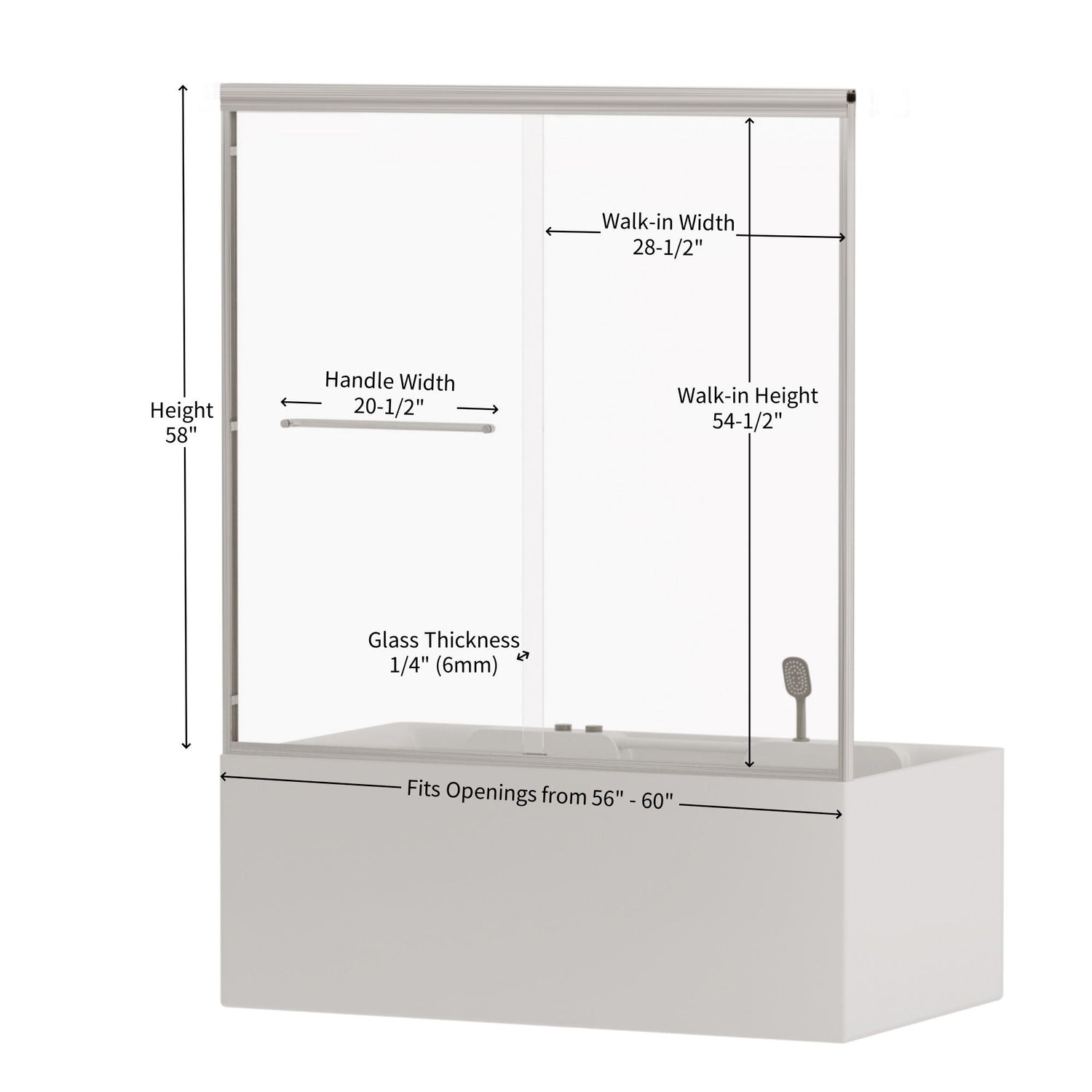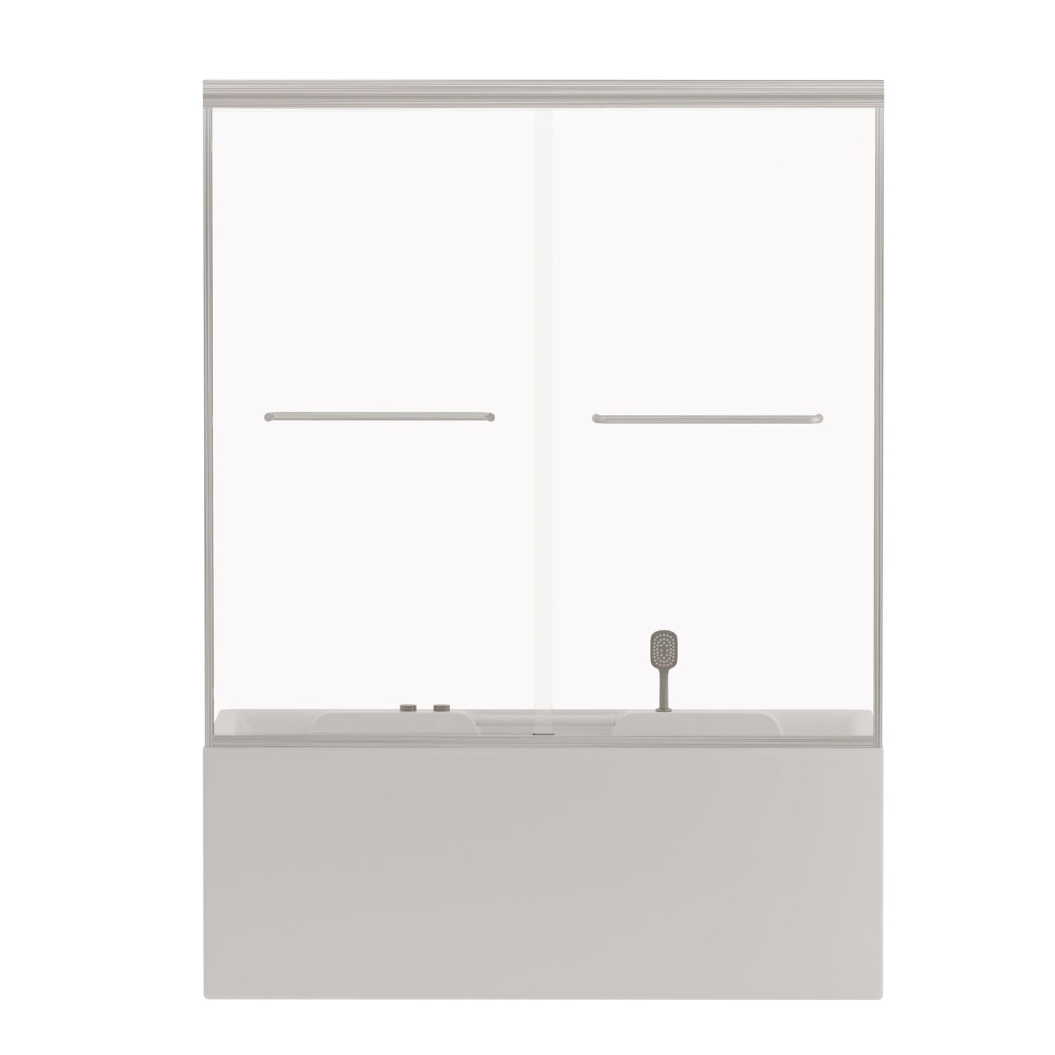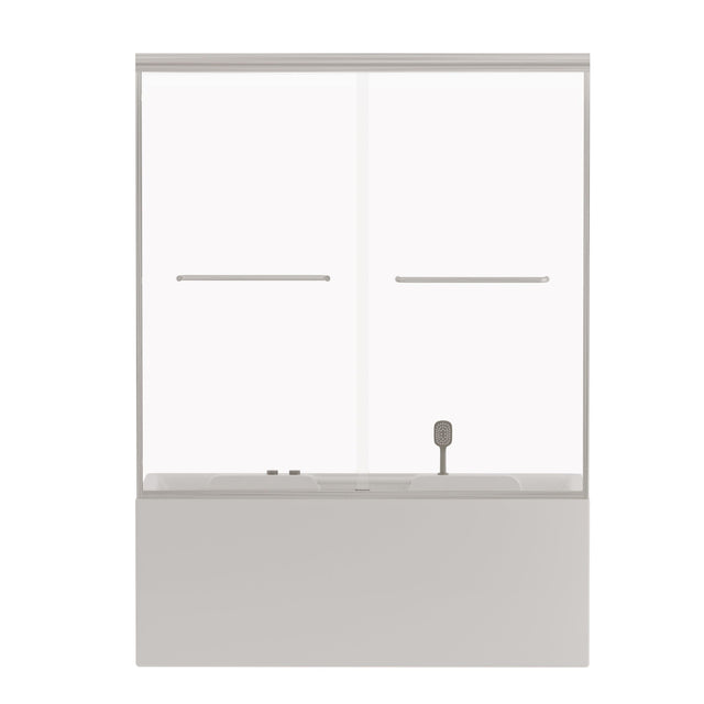 Double Sliding Bathtub Shower Door, Semi Frameless Bypass Tub Door, 1 / 4" 6Mm Tempered Glass With Explosion Proof Film, Adjustable Aluminum Alloy Frame 24D03 T60Bnx - Brushed Nickel