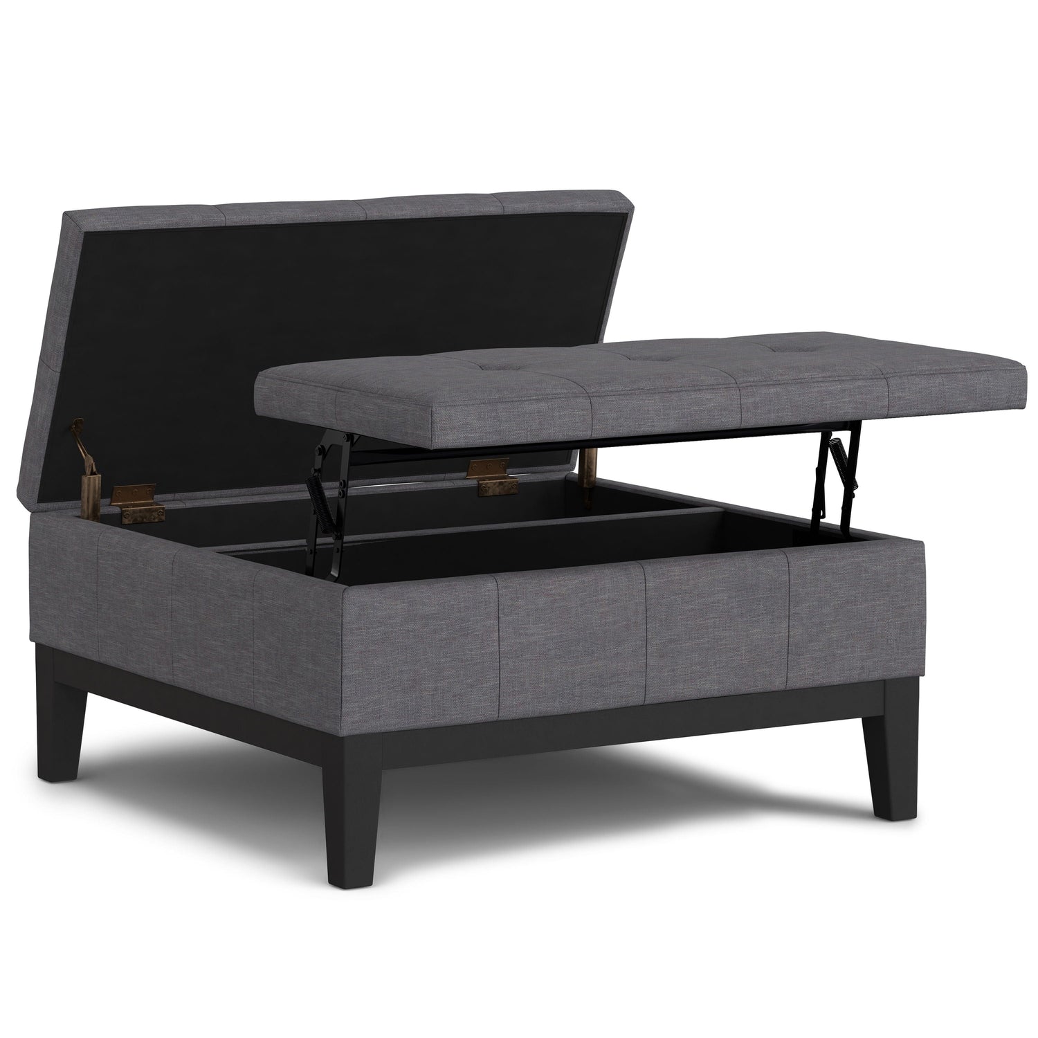 Dover - Square Coffee Table Storage Ottoman - Slate Gray
