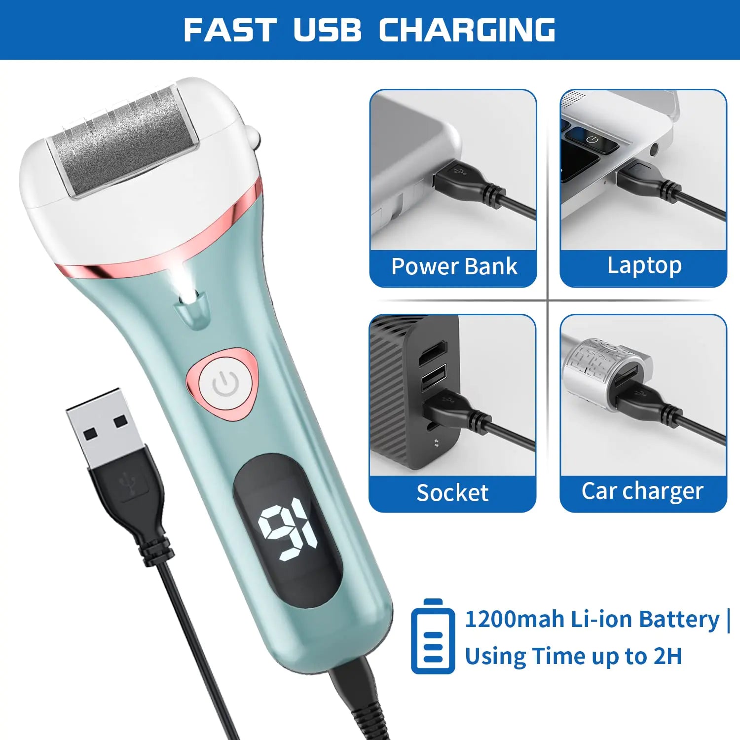 Electric Foot Callus Remover, Rechargeable Portable Electronic Foot File Pedicure Kits, Waterproof Foot Scrubber File, Professional Pedicure Tools, Foot Care for Dead Skin Ideal Gift, 3 Rollers