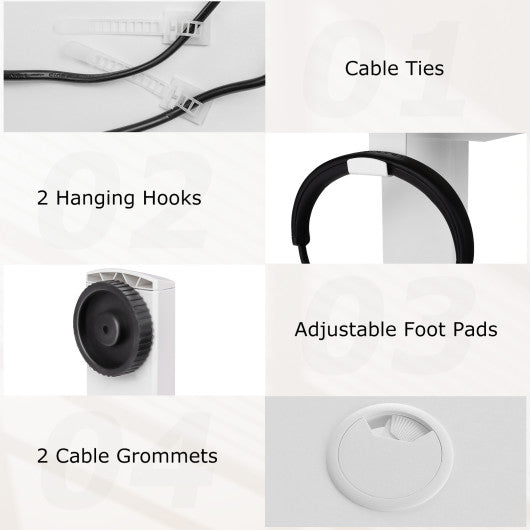 Electric Standing Desk with 3 Memory Height Settings and 2 Hanging Hooks & Cable Management-White