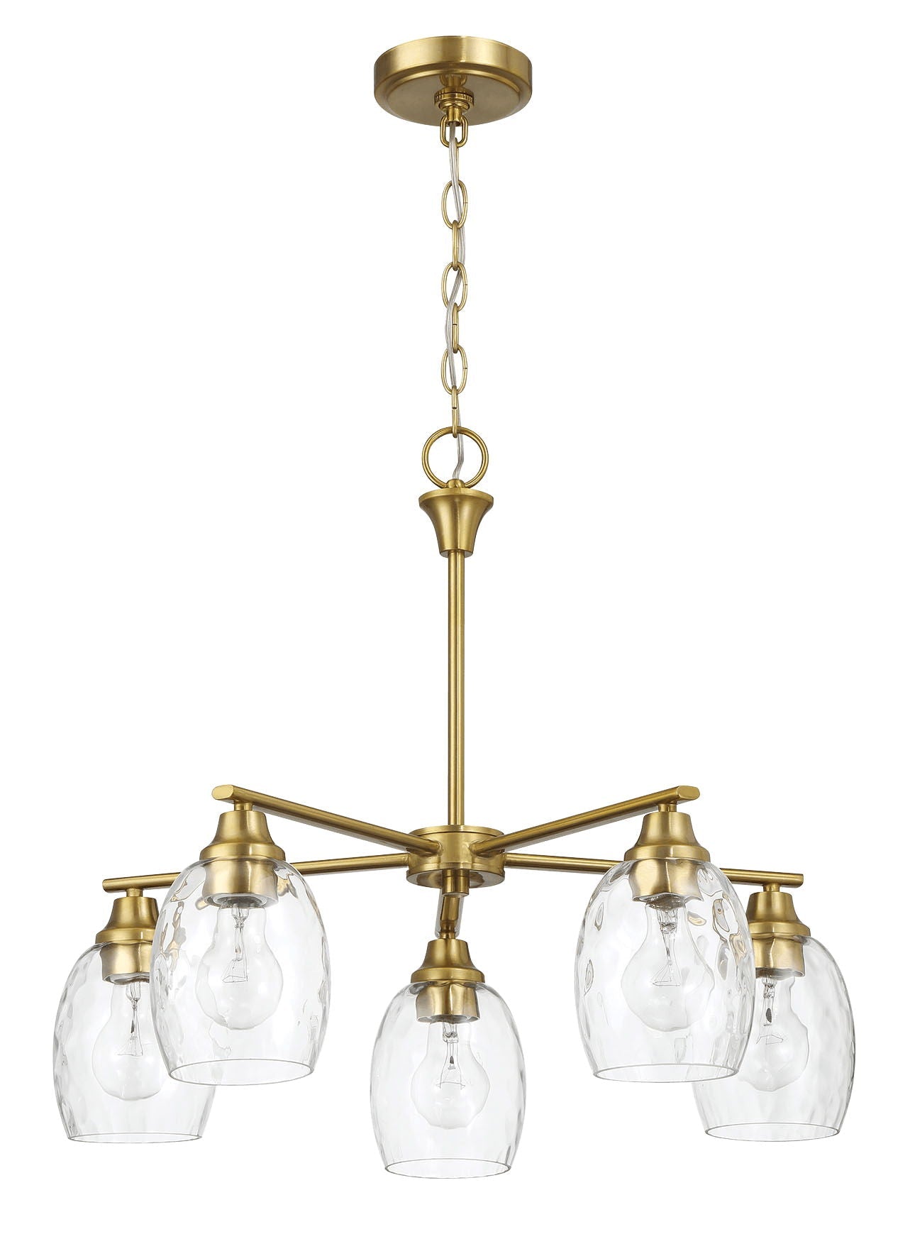 Elegance 5 Lights Linear Arms With Chain Chandelier - Clear / Gold by Couch.com
