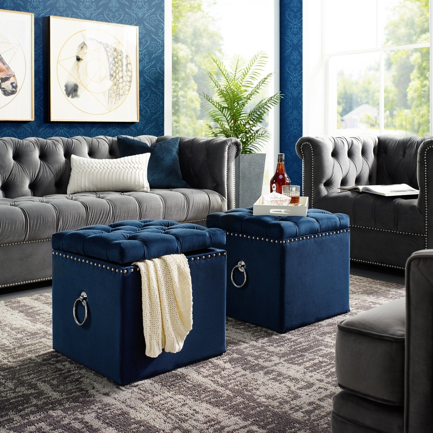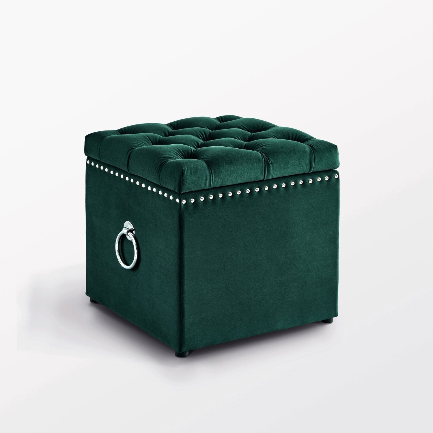 - BUTTON TUFTED - On the outside this ottoman is covered in your choice of color in velvet or linen fabric with cushioned top for a comfortable place to put your feet up. Handcrafted diamond button tufted hinged lid brings exceptional comfort and makes this peace a divinely beautiful part of your home interior