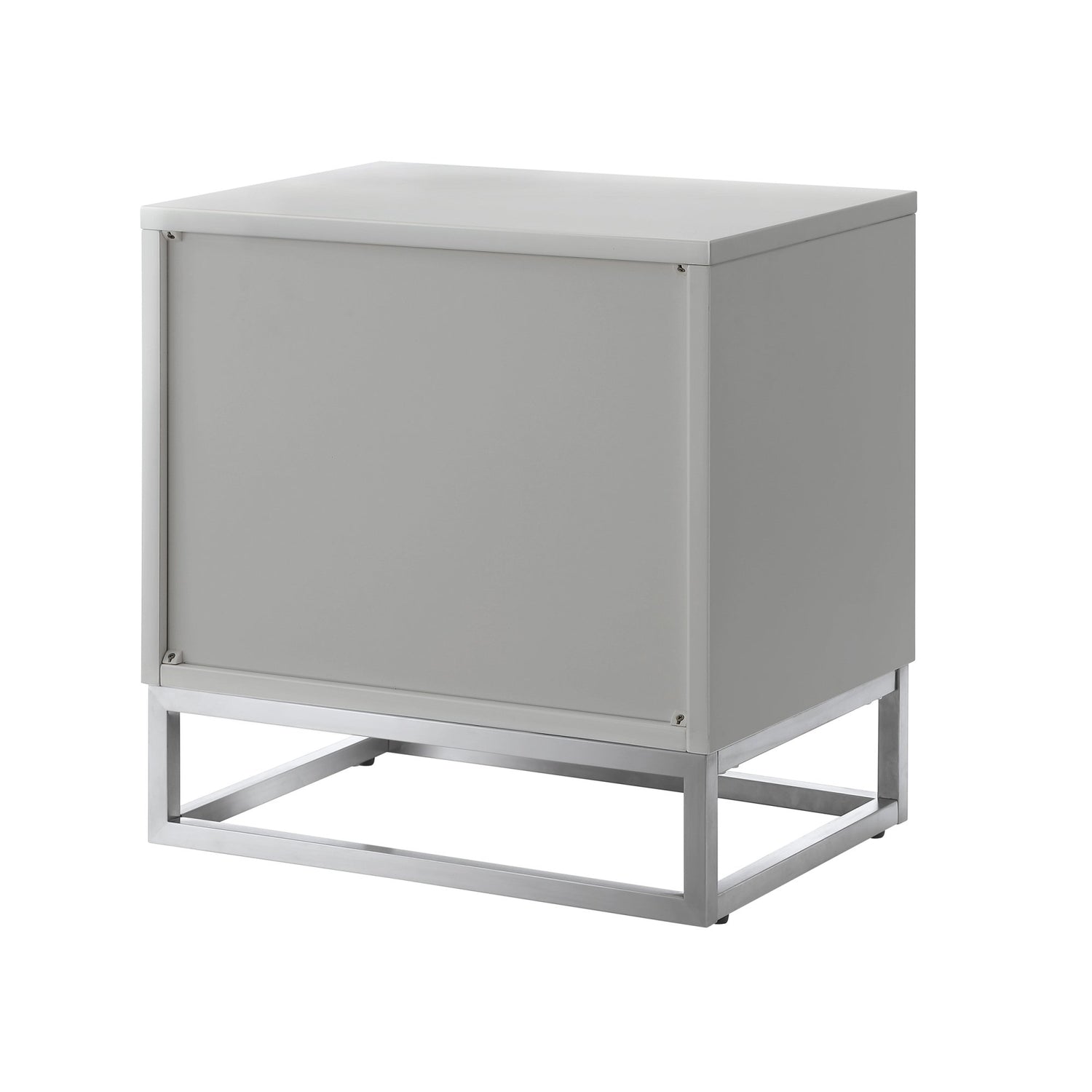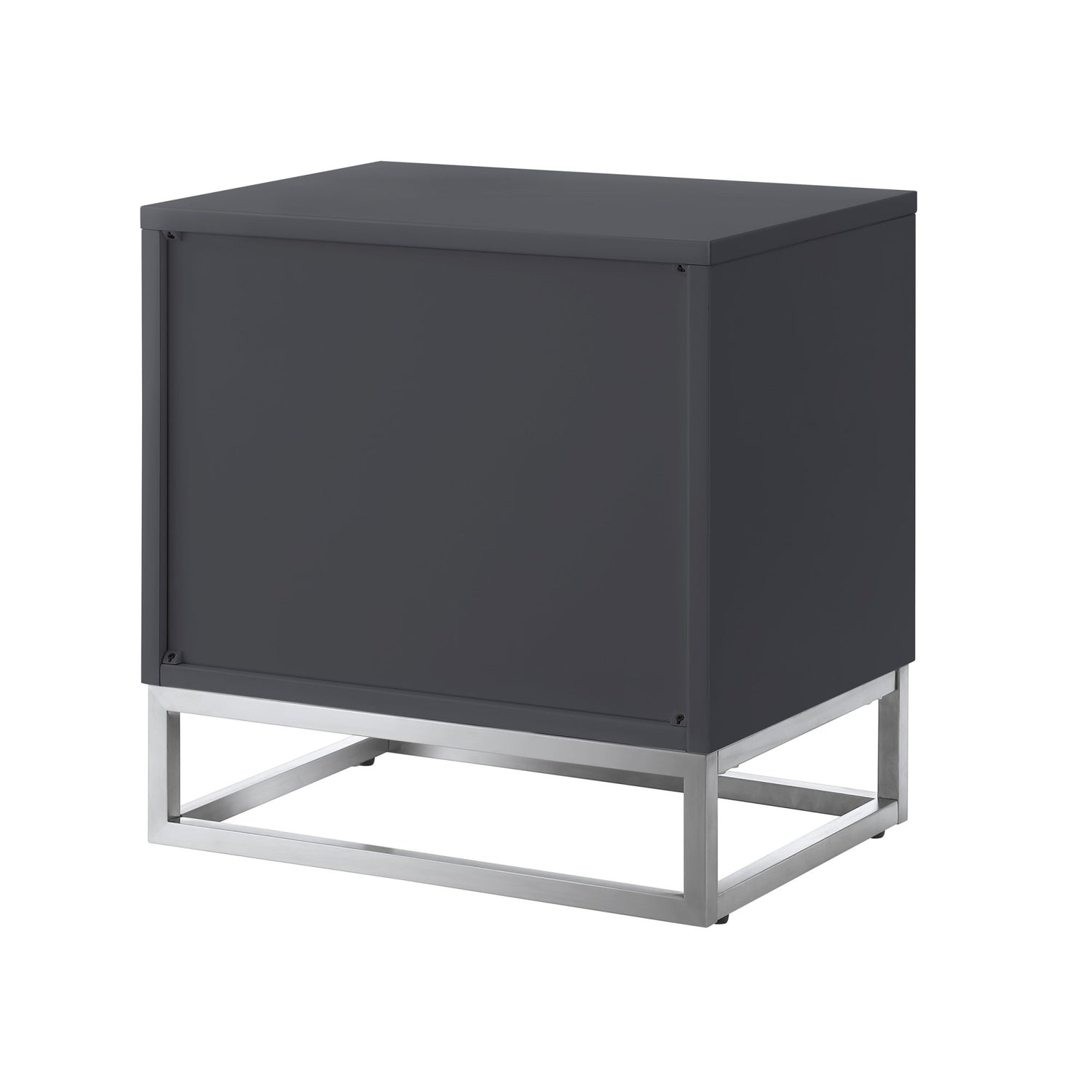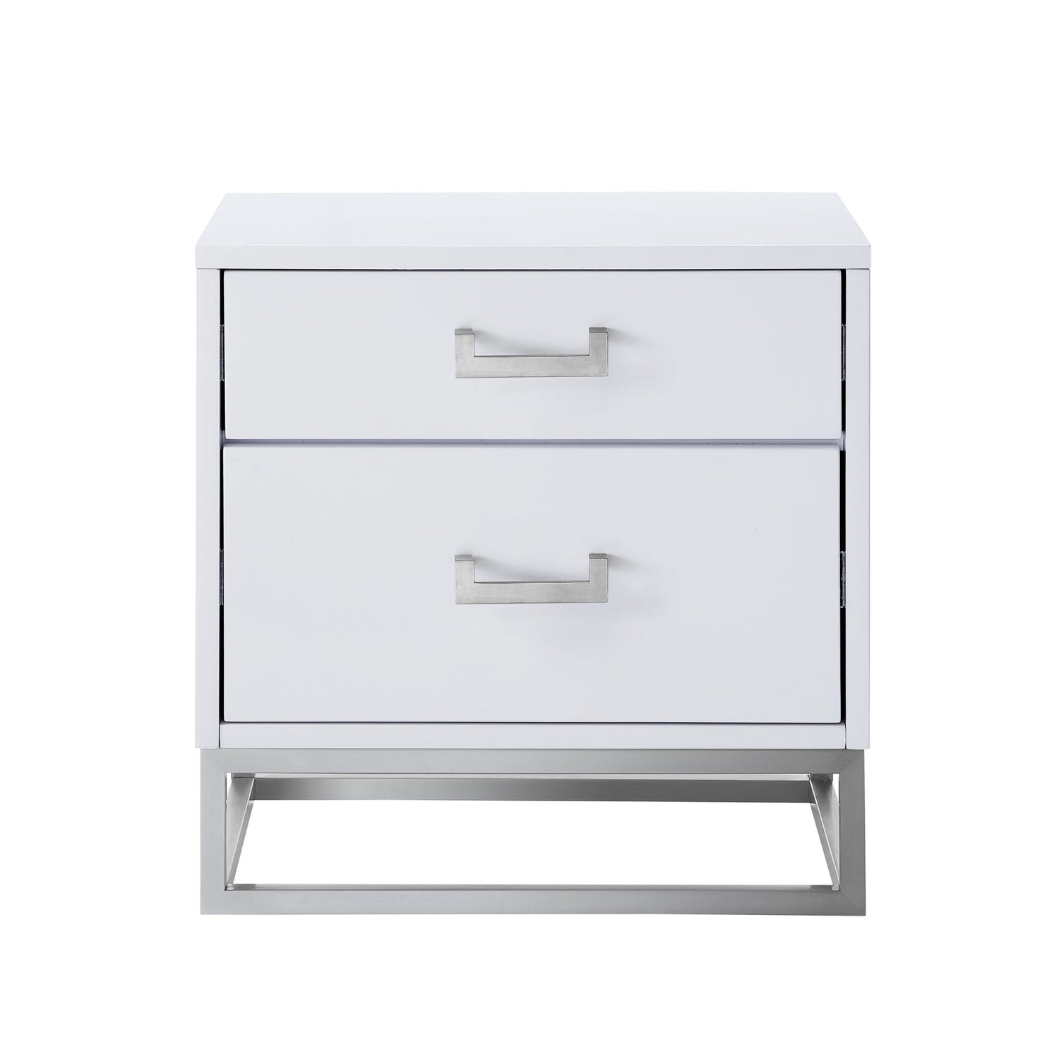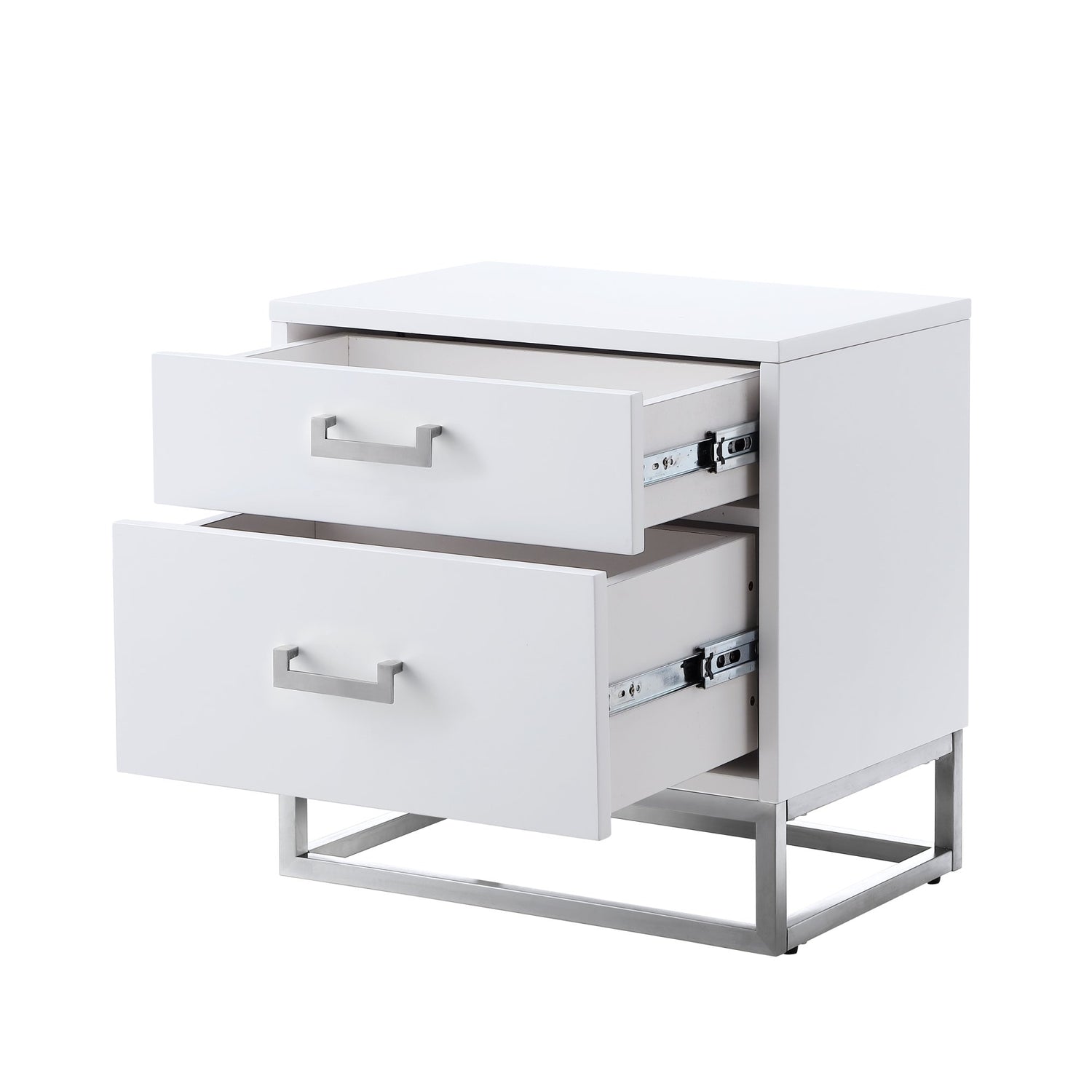 - ATTRIBUTES: 2 Drawers, Glossy Handle, Glossy Stainless Steel Base
