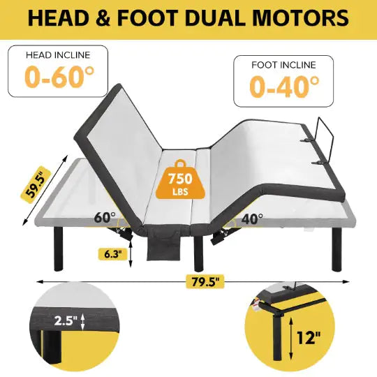 Product Name: Ergonomic Queen Size Adjustable Bed, Zero Gravity Base for Stress Management w/Head and Foot Incline, Wireless Remote Control, Massage, Under-Bed Nightlight, and USB Ports