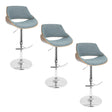 Fabrizzi - Mid-Century Modern Adjustable Barstool With Swivel With Rounded T Footrest (Set of 3) - Chrome / Walnut / Blue