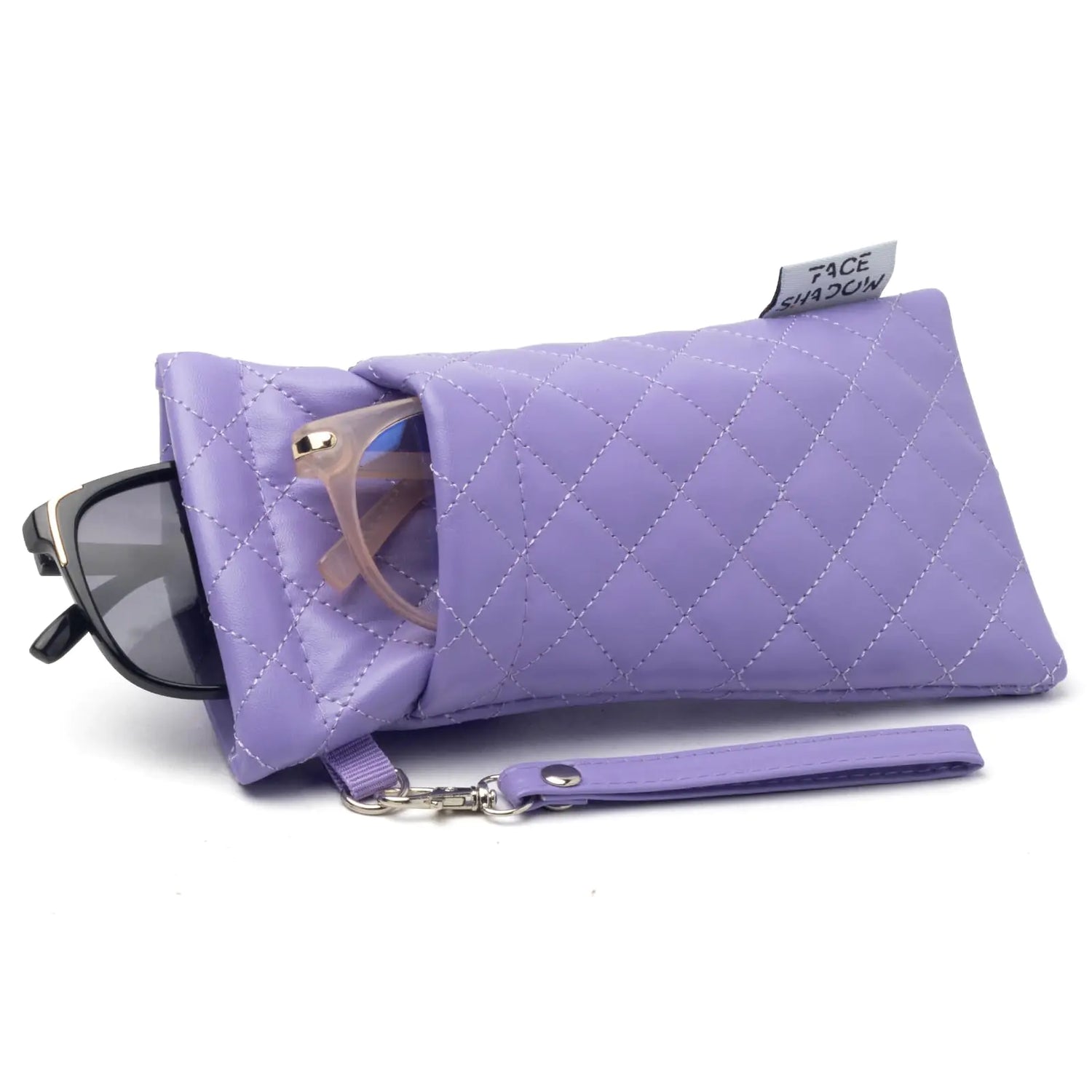 Face Shadow Double Glasses Case Soft Eyeglass Case For Women Men Squeeze Top Sunglasses Case With Cleaning Cloth Pu Purple - Pu Purple is backordered and will ship as soon as it is back in stock.