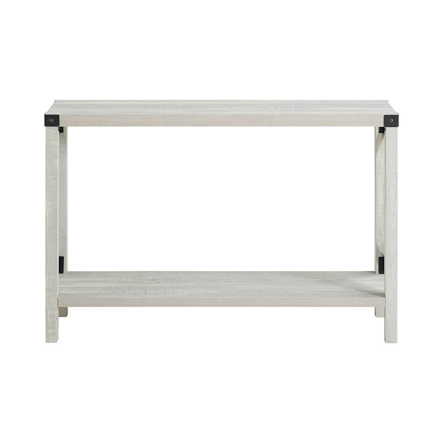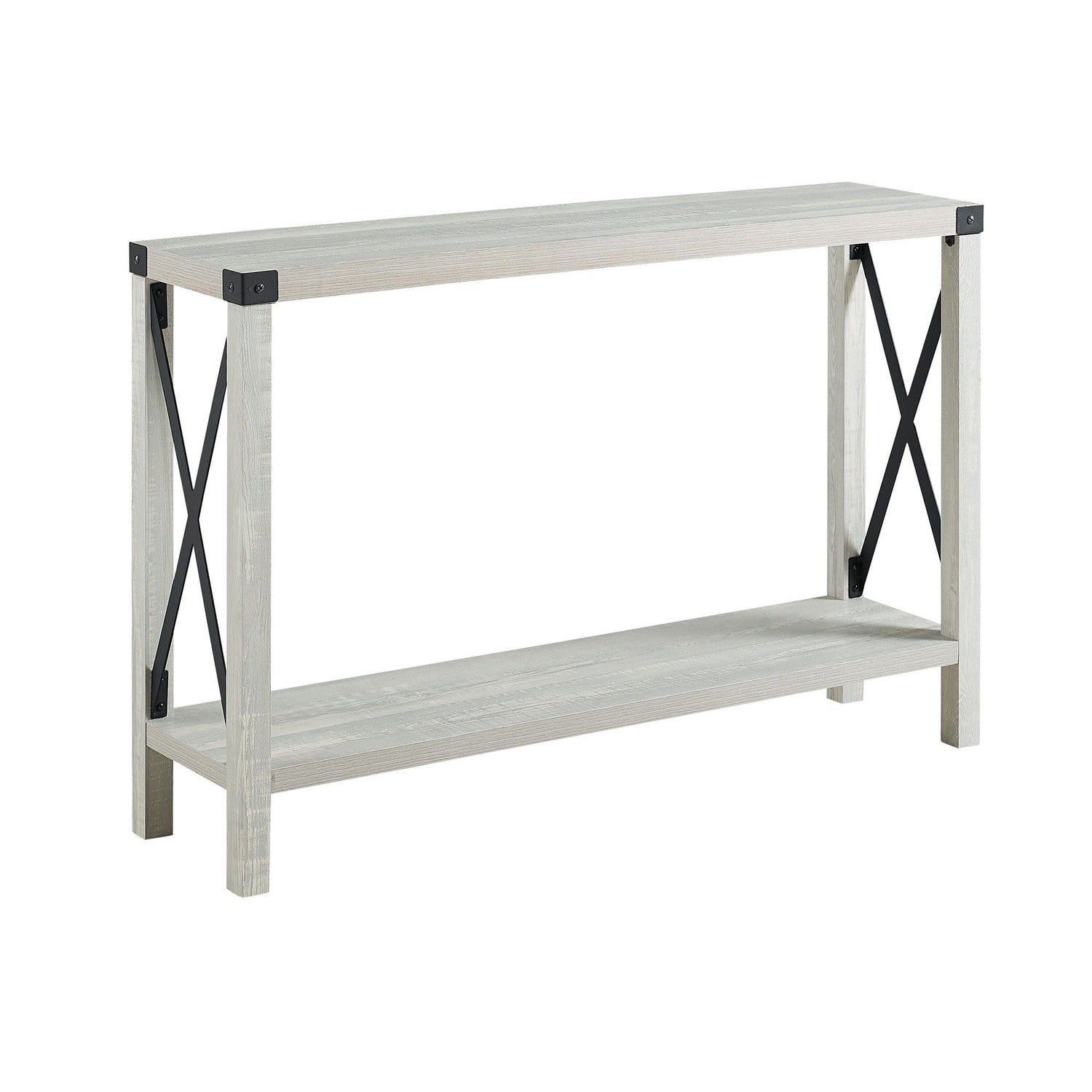 Farmhouse Metal X Table With Lower Shelf by Couch.com - Pearl Silver / Console Tables is backordered and will ship as soon as it is back in stock.