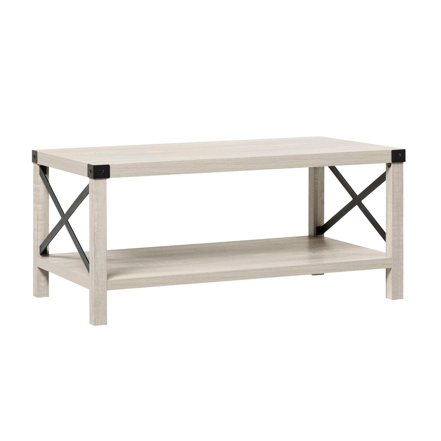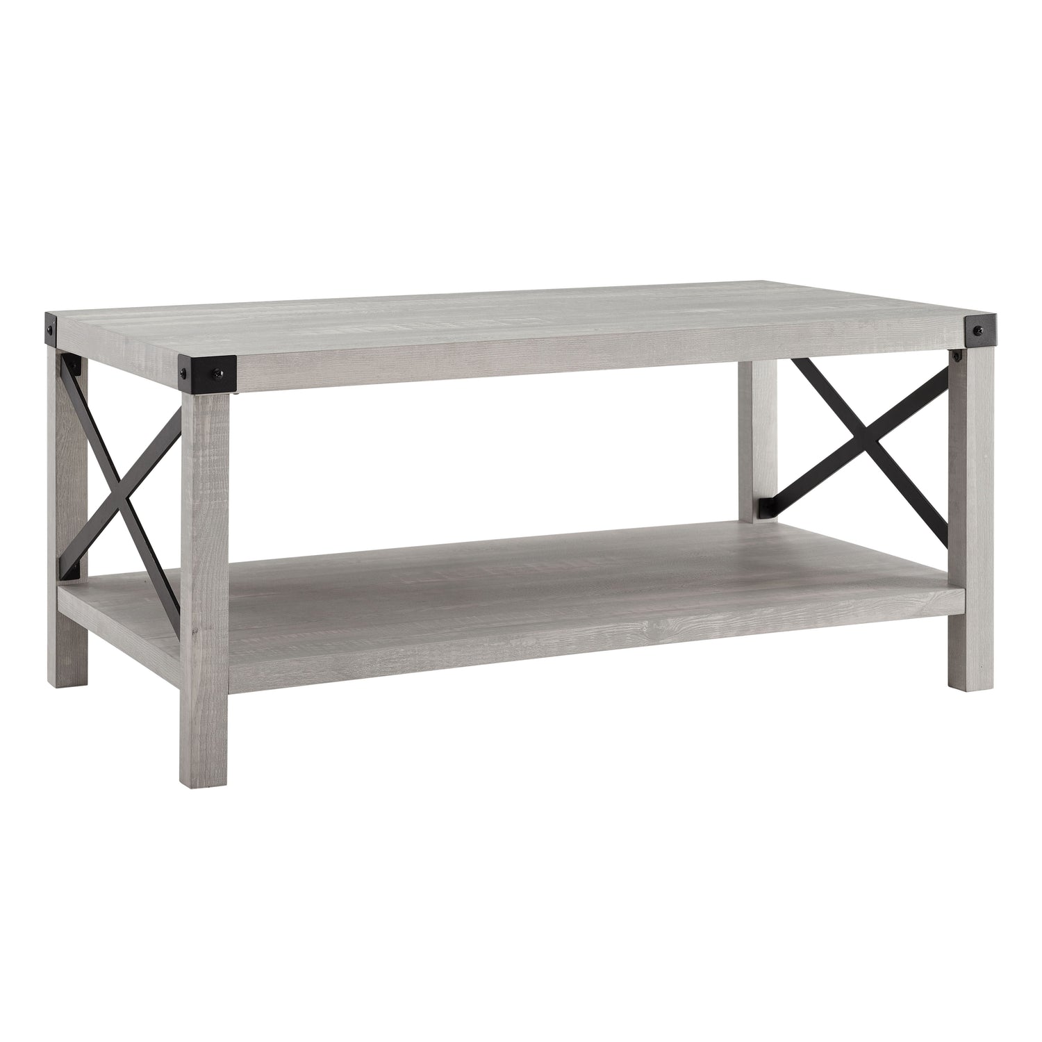 Farmhouse Metal X Coffee Table With Lower Shelf - Stone Gray