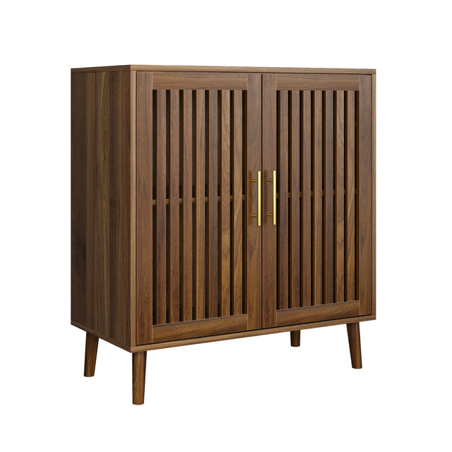 Farmhouse Sideboard Buffet Cabinet With Louvered Doors, Wood Coffee Bar Storage For Kitchen & Living Room - Walnut
