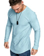 Fashion Mens T Shirt Muscle Gym Workout Athletic Shirt Cotton Tee Shirt Top Skyblue-long Small