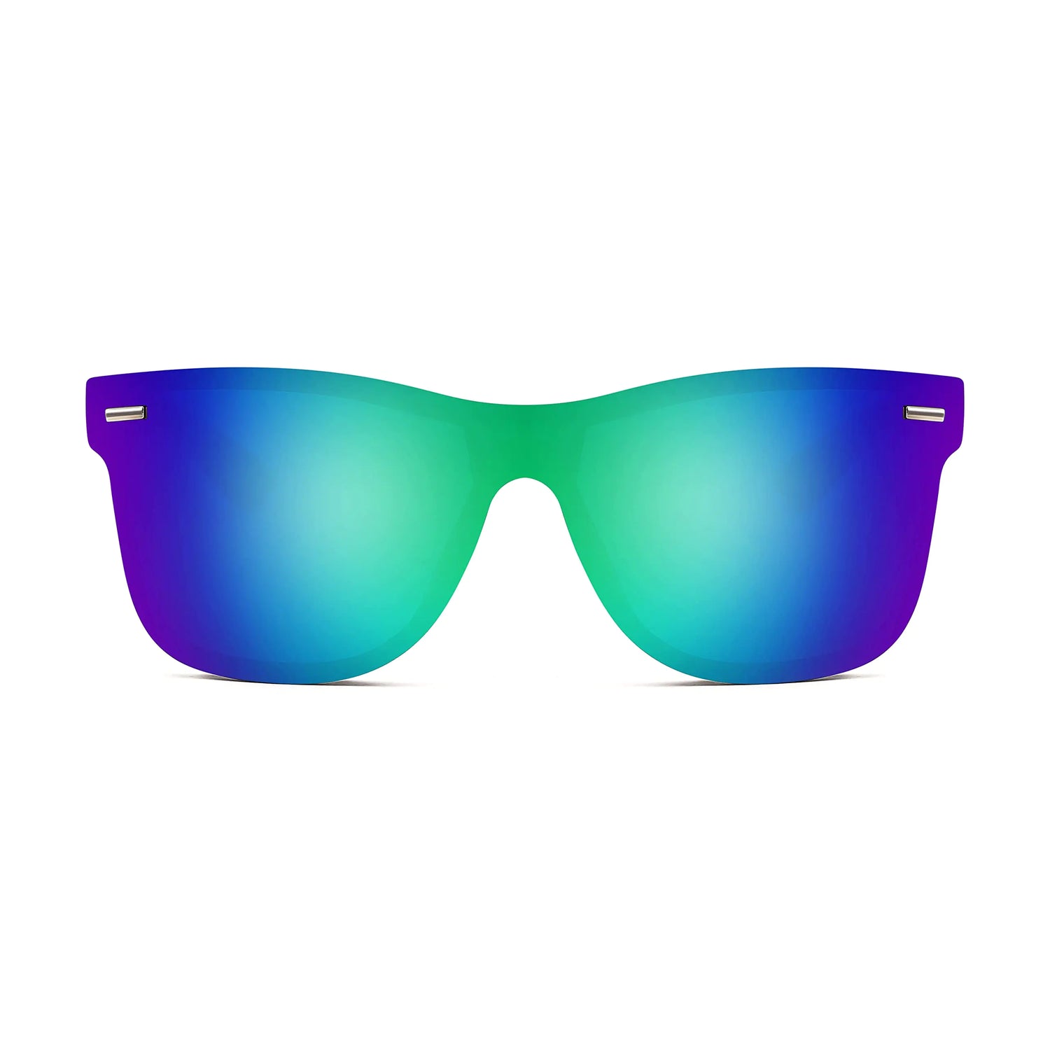 FEISEDY Sunglasses, Rimless Mirrored Sun Glasses with Reflective One-Piece Lens, B4114 Green Blue Mirror 62 Millimeters
