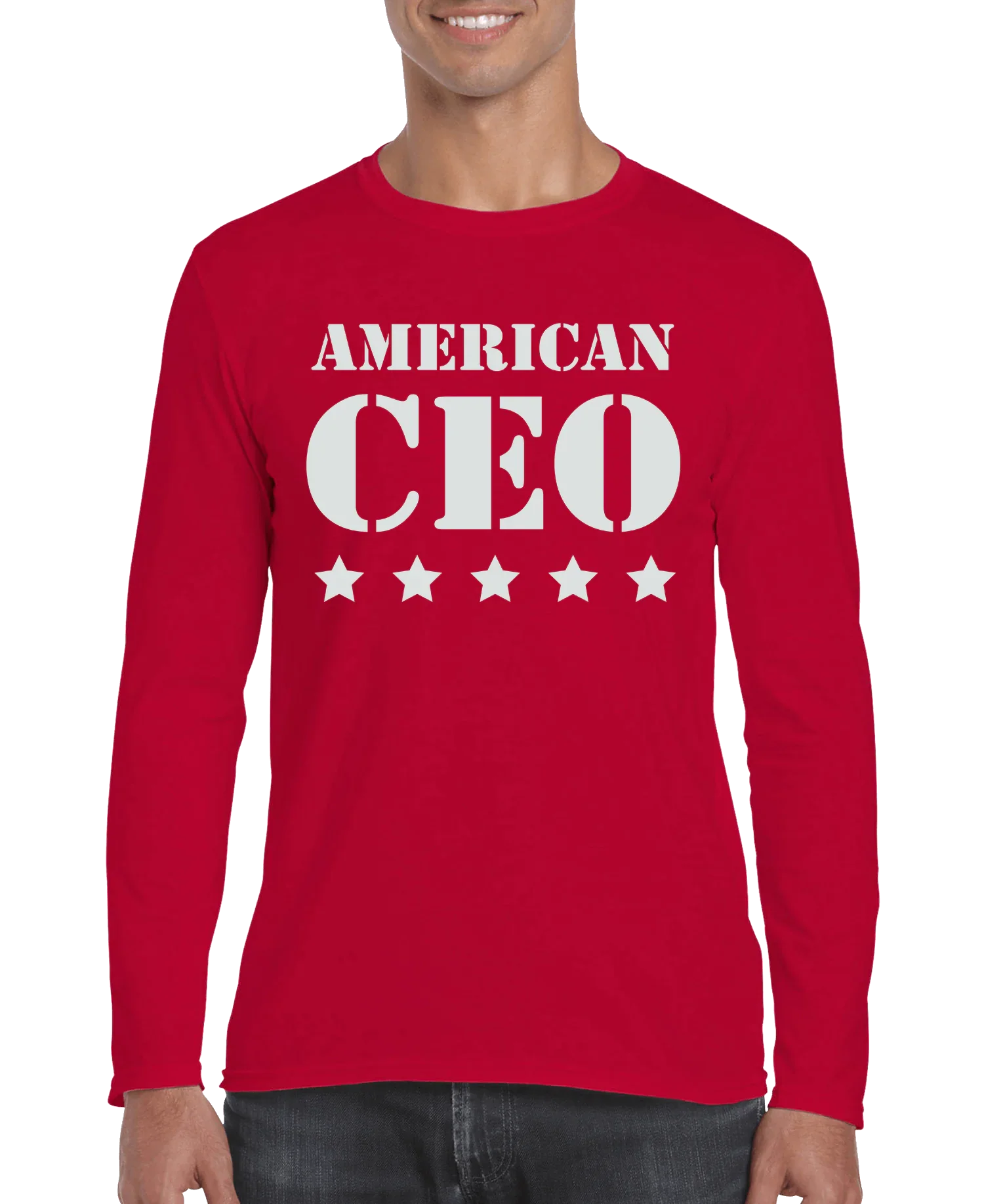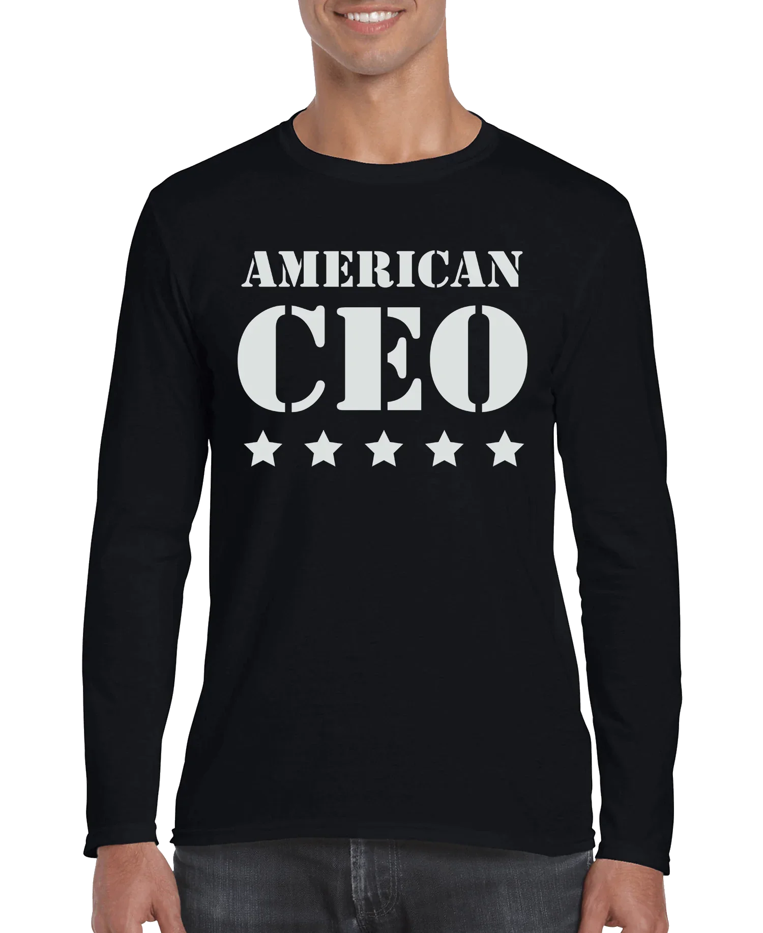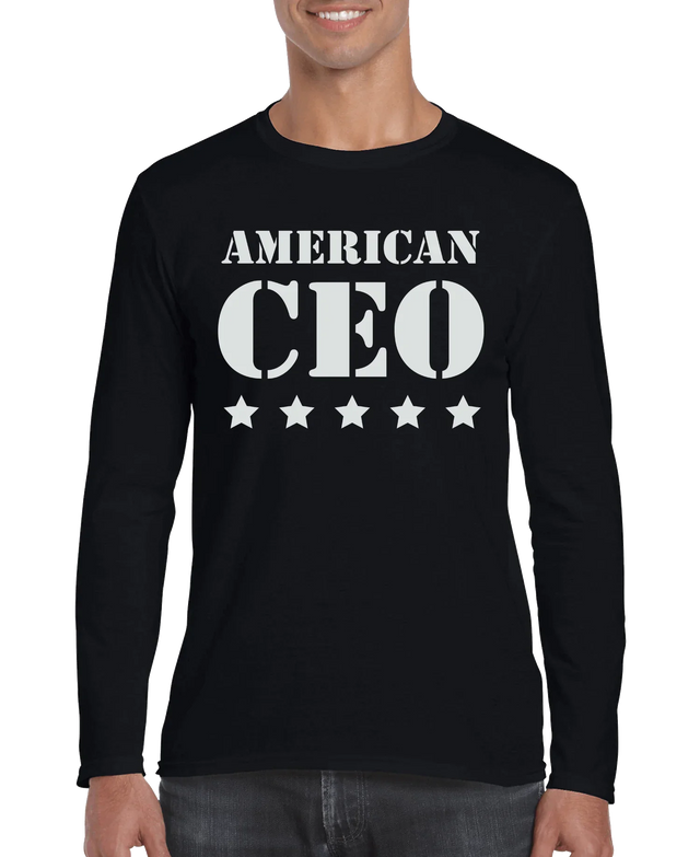 Introducing the "Five Star American CEO" Men's Long Sleeve Shirt, a premium garment designed to embody confidence, sophistication, and professionalism. Crafted with meticulous attention to detail, making it an essential addition to any discerning gentleman's wardrobe.